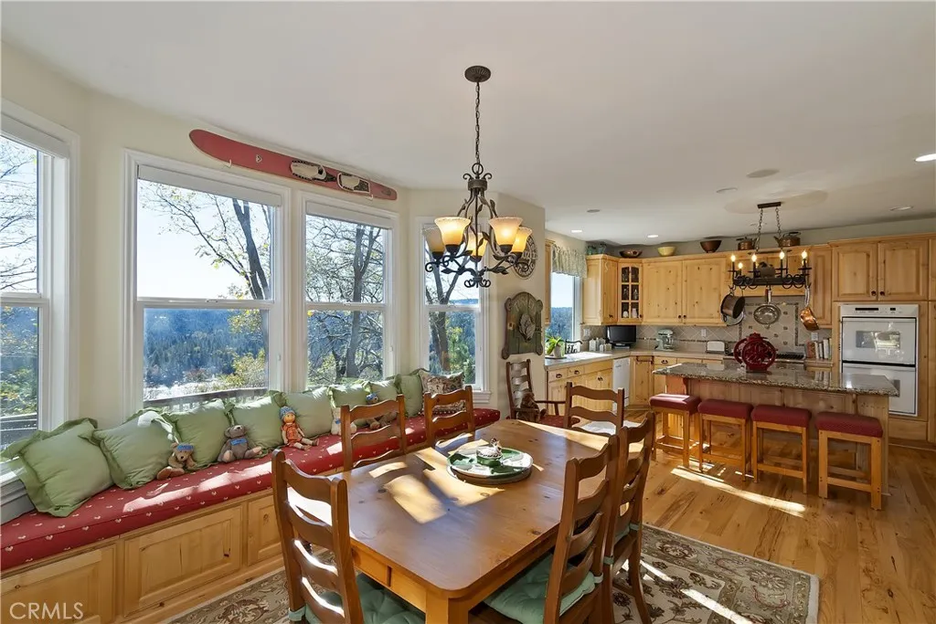 This beauty checks a lot of wants on your must-haves for a home!!!! First.....step inside from perfectly level access from your double garage or the front covered porch with wrap-around deck!! Once inside, take in the beautiful lake views as well as a far-away mountain and sky line view!! Inspiring on its own. You won't be able to overlook the beautiful full-grain wood floors!!! The main level is basically all one room and open with a back wall of windows to capture the sunlight and views. Spacious great room has a large fireplace with mantle and hearth. Cozy yet spacioue and roomy. Step into the dining area big enough to fit a large gathering of family and guests!! Cushioned window seat compliments the warmth and invites you to linger...more coffee please.... Large kitchen with a window over the sink...looking out at beautiful views. Large center island has additional seating so it's the spot where everyone likes to gather. Chef's kitchen for sure and tons of storage. Granite, 6-burner stove, built-in refrigerator, to name a few. Upstairs is a comfy family room/den with a beautiful fireplace. Large open ceilings, views and a wall of built-in book shelves. Primary suite with luxury bath; shower, soaking tub, dual sinks and large walk-in closet. 2 additonal guest bedrooms and full bath on this level. Two outdoor decks oriented to take in the views. Large gentle lot offers some nice area for gardening or just soaking up the sun. Yes, we have lake rights!!!