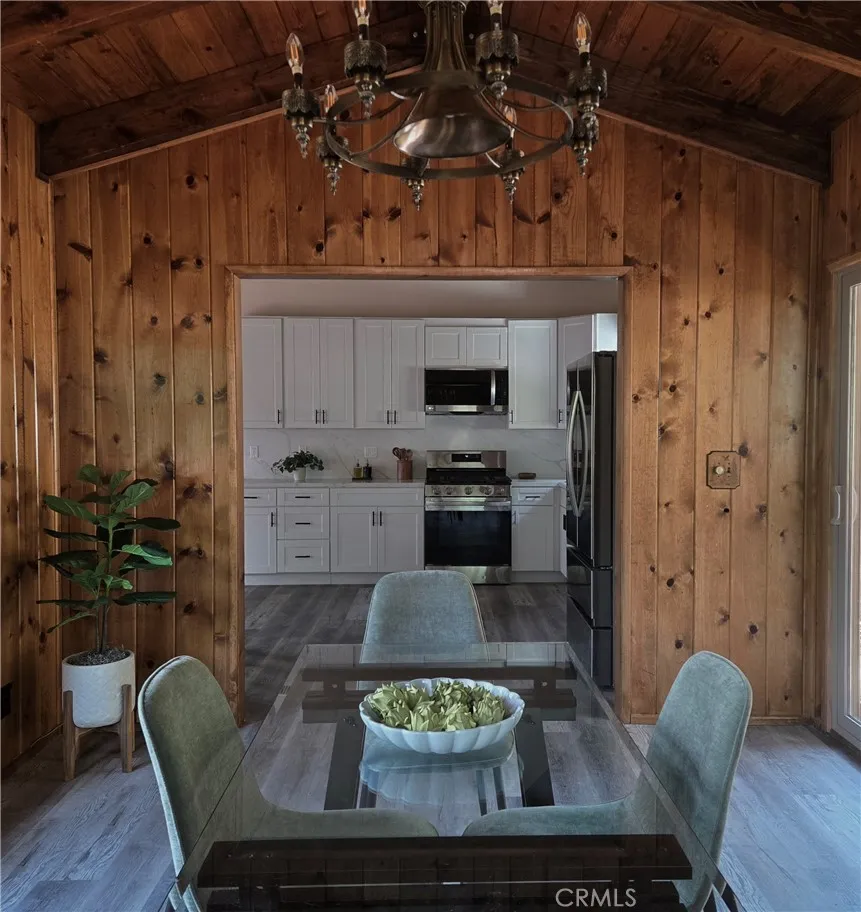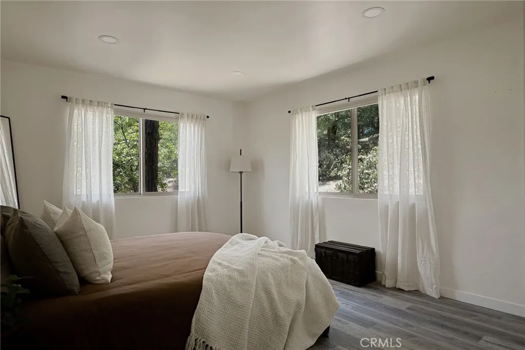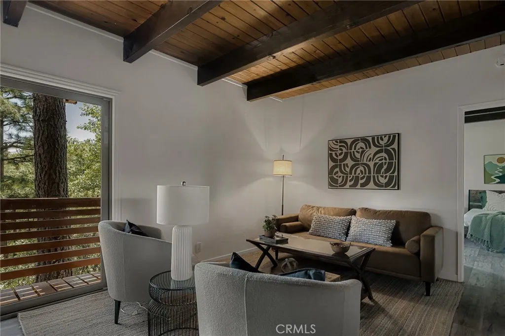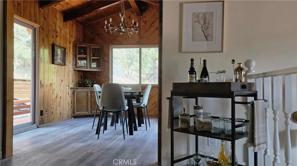 Tucked away in a serene forested setting, this thoughtfully renovated 3-bedroom, 2-bath cabin offers a rare blend of vintage character and modern sophistication. Ideally situated with dual access and a desirable floor plan that includes two main level bedrooms, the home provides both convenience and comfortperfect for full time living or a luxurious weekend escape. A charming horseshoe driveway welcomes you just steps from the front entry, offering effortless access in all seasons. Inside, the residence is filled with natural light, where expansive picture windows frame tranquil views of the surrounding trees, creating a seamless connection to nature. The kitchen and bathrooms have been meticulously remodeled with tasteful modern finishes, enhancing functionality without compromising the cabins original charm. Vintage lava rock fireplace, rich wood accents and beamed cathedral ceiling pay homage to the homes heritage, while clean lines and fresh paint create a bright, elevated ambiance throughout. The lower level features a spacious third bedroom and full bath. As a bonus, a versatile den easily functions as a lounge, media room, or game spaceideal for entertaining or relaxing. Step outside to a spacious deck and take in breathtaking backlit sunsets and moonrise views, surrounded by whispering pines and crisp mountain air. With ample space to expand in the buildup below and thoughtful updates already in place, the home offers exceptional potential to tailor to your vision. This Arrowhead retreat is a fantastic opportunity to own a timeless lake rights mountain home that bal