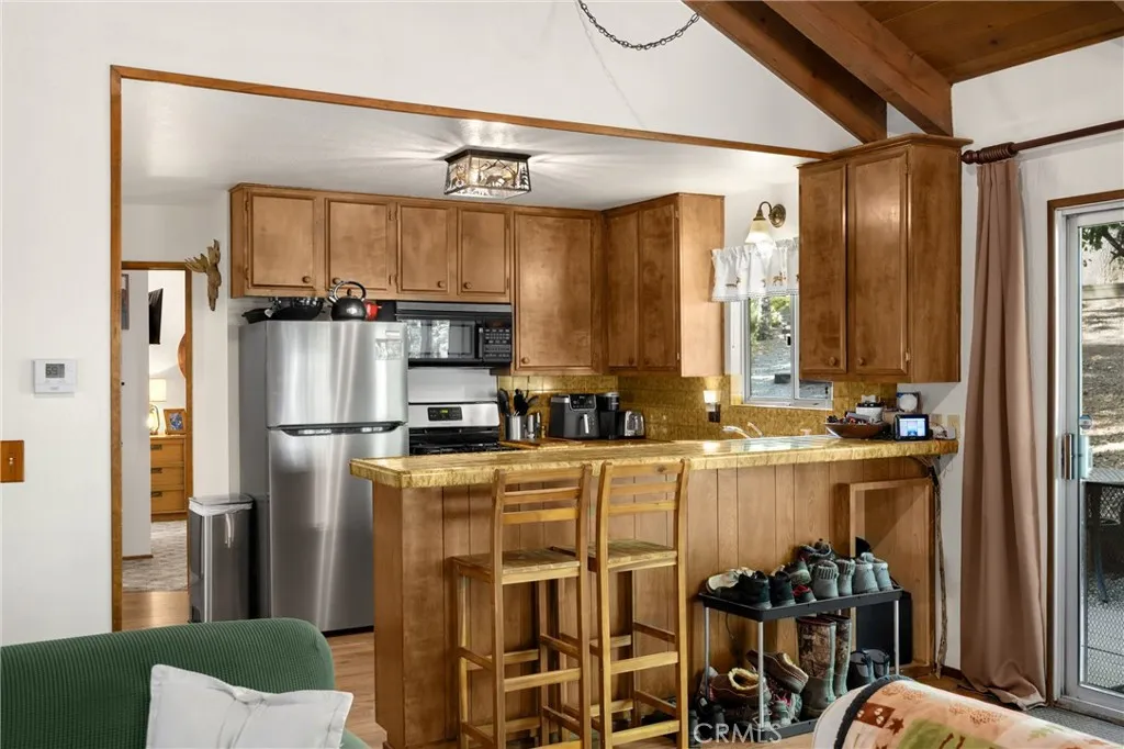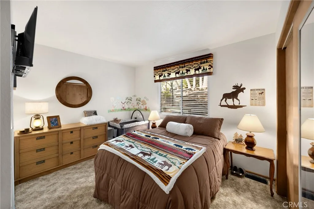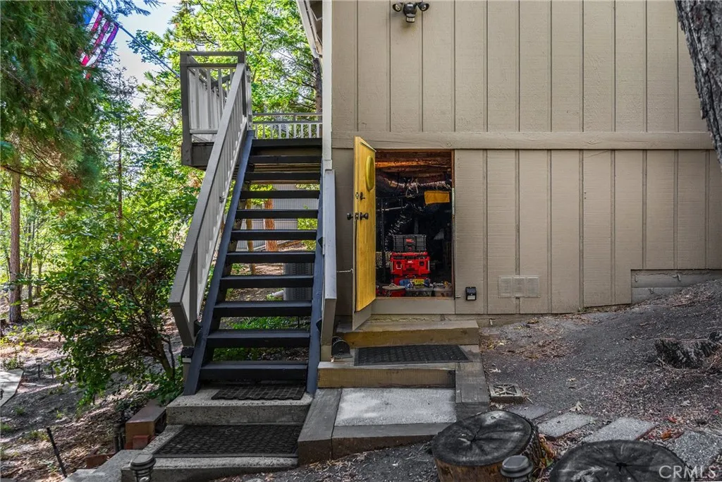 Nestled in the woods yet just a stone's throw from Lake Arrowhead WITH Lake Rights, this charming gem offers the perfect balance of seclusion and convenience. Well-maintained and ready for your next adventure, it's the idea place to unwind and reconnect with nature and the mountain environment. With dual access-from the front and rear-you have options for easy access with plenty of parking availability. Inside, you'll find an open living area with vaulted ceilings, tongue-and-groove wood paneling, and a cozy wood burning fireplace-perfect for those chilly winter days. The main floor features a spacious living room and dining area, a fully equipped kitchen, two bedrooms and a full bath. And, with the laundry conveniently located right across from the bedrooms, everyday living couldn't be easier. Upstairs you'll find the primary suite to be a true sanctuary. Soaring ceilings, a private en-suite bath, and plenty of closet space create a peaceful escape. There's also enough room for a small home office, reading nook, or yoga space, making this the perfect place to recharge. Wait .. there's more! The lower level is a mostly unfinished basement with plenty of room for storage-whether it's holiday decorations or lake toys, there's room for everything you need. Sold mostly furnished, this four season cabin makes transitioning to your mountain getaway simple. C'mon Up - the mountains and lake are waiting for you!