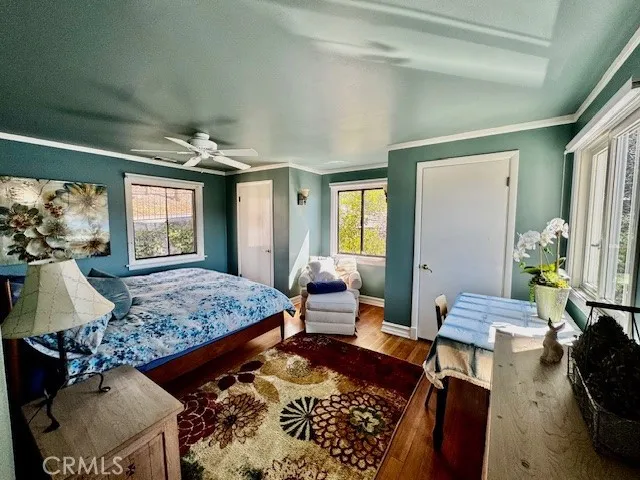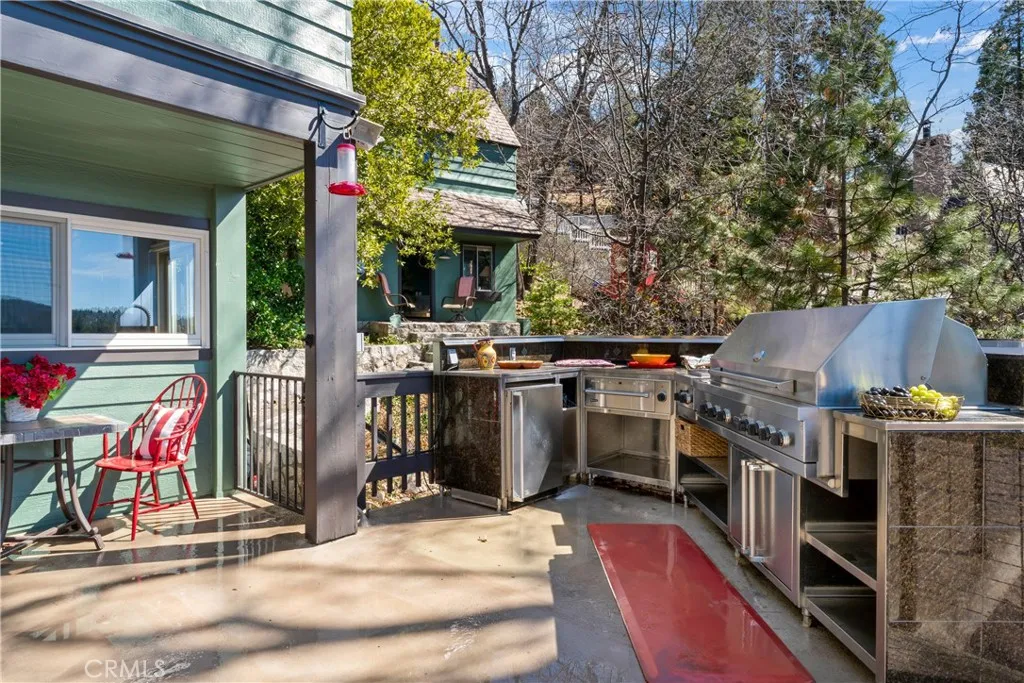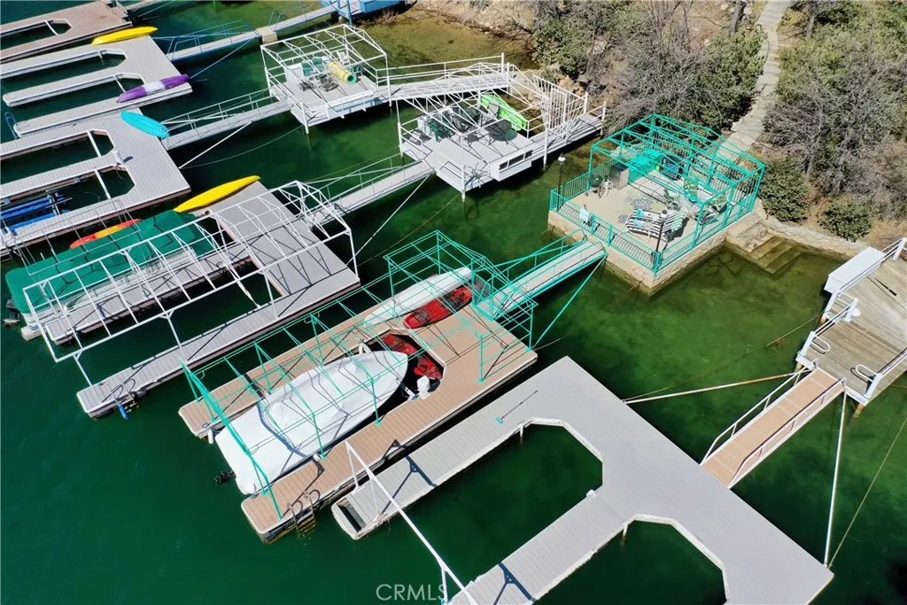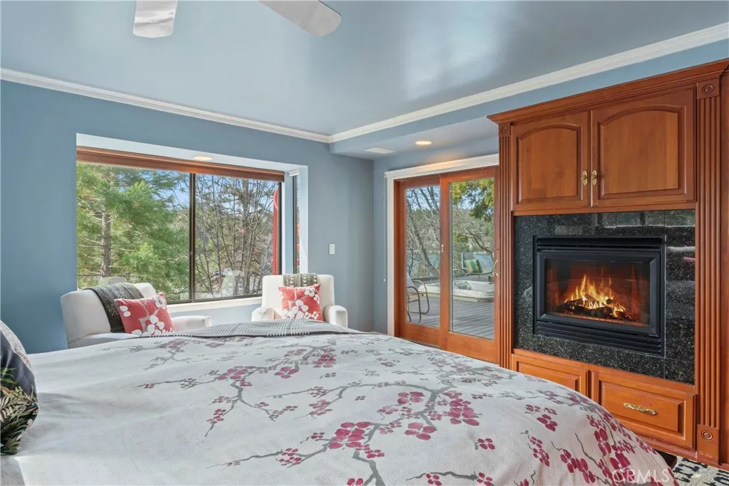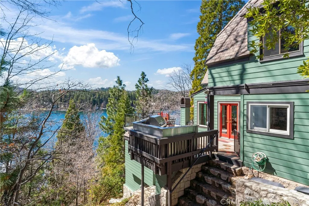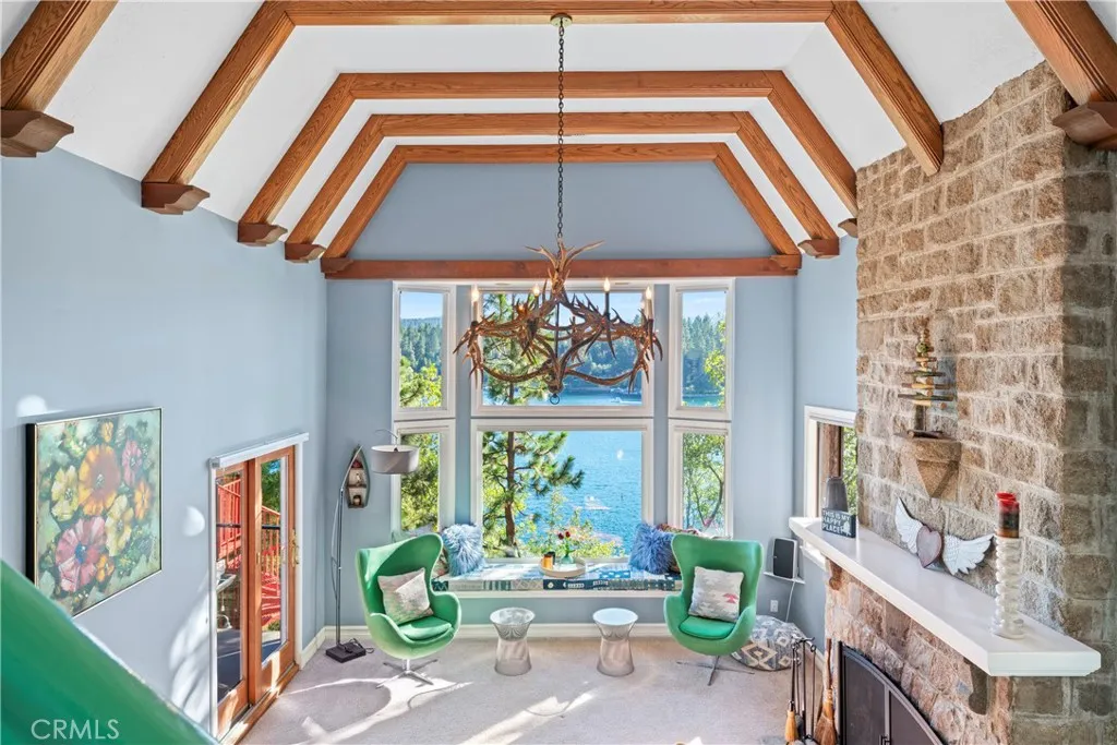 Upon entering this magnificent Lakefront home that blends a modern style with vintage appeal, youll look out to glistening North Bay views from massive windows. Originally built in 1922 by James Gamble of Procter & Gamble, one of Lake Arrowheads visionaries, this North Shore estate spans a gently terraced half-acre with full-day sun and spectacular sunsets. Expanded, updated, and lovingly maintained over decades, this home marries timeless elegance with contemporary comforts. The floor plan offers multiple indoor/outdoor areas, 5 bed-rooms including a spa-like primary suite and a separate guest cottage suite, four baths, a two-car garage and a single slip dock with a double-sized granite pier. The heart of the home is the spectacular two-story great room, where exposed beams and a floor-to-ceiling granite wood-burning fireplace create an ambiance of warmth yet grandeur. A long window seat invites you to lounge with a book, sip a glass of wine, or simply take in the ever-changing hues of the sparkling lake below. The bright kitchen is outfitted with top-of-the-line Viking appliances. The double french doored dining area opens onto a sprawling entertaining deck, commercial-grade Viking grill, refrigerator, and barperfect for al fresco summer gatherings. Also on the main level is a versatile bedroom and bath which could be an office, den or study. It looks out to a soothing recirculating stream water feature. Below a spacious family room, with warm wood paneling and cabinetry, window seating, a built-in bar, big-screen TV, french doors open to another expansive Trex deck built