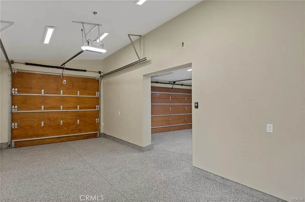 Price Reduced. Bring an Offer! In the heart of the Lake Arrowhead Woods rests this sprawling, level-entry, retreat-like home. Boasting a large flat fenced-in yard, adorned with fruit trees and relaxing greenery, perfect for children and or pets. Parking is a breeze with off street parking for nine cars (2 in the garage) and a second custom garage with enough room for a boat, RV or two more cars. Mountain ambiance carries inside and out with so many amenities that you need to have a checklist ~ a large primary suite on the main level with a spa tub, walk-in shower and walk-in closet ~ level entry into the two-car attached garage and custom oversized 3rd/4th attached RV/Boat garage ~ maintained county road with dual access for additional parking. Level entry is on back side of house where there is plenty of parking and the two car garage and the newly built RV/boat garage. Gorgeous WOOD flooring ~ high ceilings ~ cook's delight kitchen with stainless steel appliances ~ two separate living rooms, one up and one on main floor; a family room and game room all equipped with wood burning fireplaces ~ and three additional spacious bedrooms in addition to the primary on the main level. The main level is set so you can live on it without venturing to the upper level since it is equipped with a large living room, kitchen, primary bedroom suite, laundry and separate powder room with level entry from the two car garage. The upper level is just plain fun with a dual sided fireplace servicing the family room and additional living room, as well as the remaining three bedrooms. This home is