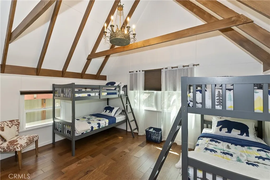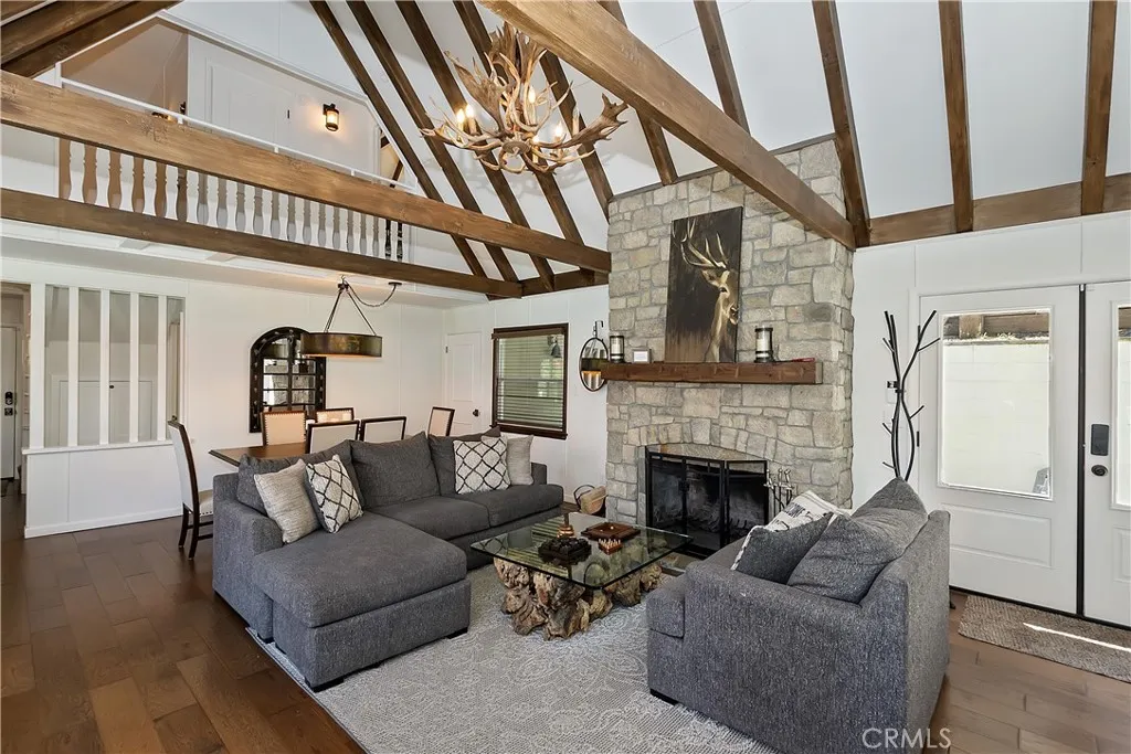 Just Reduced.Elegant and tranquil Lake Arrowhead Retreat in The Palisades . Meticulously maintained ! Discover luxury mountain living in this stunning 4-bedroom, 3-bath home nestled in the highly sought-after Palisades area of Lake Arrowhead. Thoughtfully designed and fully furnished, this home blends modern sophistication with rustic charm. One bedroom easily converts into a spacious family room, featuring two newly installed Murphy beds for added flexibility. Soaring cathedral ceilings and expansive new windows fill the space with natural light, while a floor-to-ceiling stone fireplace and hickory wood floors create an inviting ambiance. The gourmet kitchen is a chefs dream with quartz countertops, a La Cornue range, and sleek custom finishes throughout. Step outside to a large deck ideal for entertaining or simply taking in the peaceful lakeviews. Relax in the new hot tub or take a stroll down to the lake to your private single-slip deep water dock included in the sale located in the very calm "Robin Hood Bay." The bay offers a very large beach area for the kids to play safely in the water. With Bedrooms and bathrooms on each level, plentiful parking (a rarity in this area), and a location just minutes from Lake Arrowhead Village and Cedar Glen make this property a true gem. To complete this fantastic lake life package, we have a boat that can be purchased separatey. Start enjoying lake life in Lake Arrowhead in a truly one of a kind property.