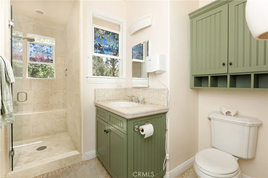 This is an incredible opportunity to own first-tier in one of Lake Arrowheads most prestigious gated communities. Located just across the road from the lake, this beautifully maintained 2002-built home delivers the mountain lifestyle youve been dreaming ofblending comfort, elegance, and serenity under a canopy of mature oak trees. With four bedrooms and three bathrooms, its ideal as a full-time residence or a luxurious lake retreat. ~ Lake access marker #62 is just steps away, inviting you to stroll over and enjoy all the magic of summer at the lakemorning paddles, sunny afternoons on the shore, and cool evening walks as the sun sets behind the trees. The open-concept main level is designed for easy living and entertaining, with tiered flooring that creates a natural flow between the living and dining areas. A main-level bedroom with its own private deck entrance offers flexible use as a guest room or home office. Upstairs, the primary suite is a true haven, featuring a cozy river rock fireplace, a live-edge mantel, a bay window reading nook, and a spa-like soaking tub. Two additional upstairs bedrooms, joined by a charming Jack-and-Jill bath, feel like something out of a storybook. ~ Custom tile accents, sweet private decks, and thoughtful touches add warmth and character throughout. Sunlight streams through large windows and glass doors, while the private, treed setting ensures a peaceful escape. The oversized two-car garage connects directly to the home via a graceful, curving driveway with a spacious turnaround. Dont miss your chance to own in North Shore Estates at an