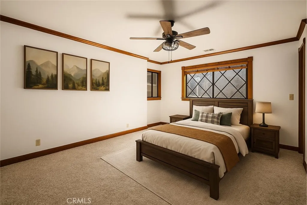 Welcome to Point Hamiltair, one of Lake Arrowheads most prestigious lakeside communities, located on the areas most sought-after peninsula and nestled in the back of the "Giant Oak" the centerpiece of this exceptional cul-de-sac location, it's all about location! This mountain Tudor style property includes a conveniently located dock slipjust a short walk across the street offers easy ramped access to the lake. Family can enjoy a safe outdoor playground from the level cul-de-sac to the flat back yard and a simple stroll to waters edge. Upon entering, youll find the kitchen, dining area, living room, and bonus/den all situated on the main level. Off the kitchen is a connected two-car garage with bonus space for storage. The kitchen features updated countertops and modern appliances, ideal for entertaining family and guests. A formal dining room opens to the cozy family room/den, and a large double-sided fireplace connects the den and living room, creating the perfect setting for seasonal gatherings. From this space, step outside to a generous outdoor living area nestled beneath the towering pines. Upstairs, the home offers three bedrooms, plus a spacious loft, beautifully upgraded bathrooms, and a primary suite with vaulted ceilings, an en-suite bath, and its own private fireplace. Dont miss this incredible opportunity to own in one of Lake Arrowheads most desirable neighborhoods! This home has the location, just bring the family...