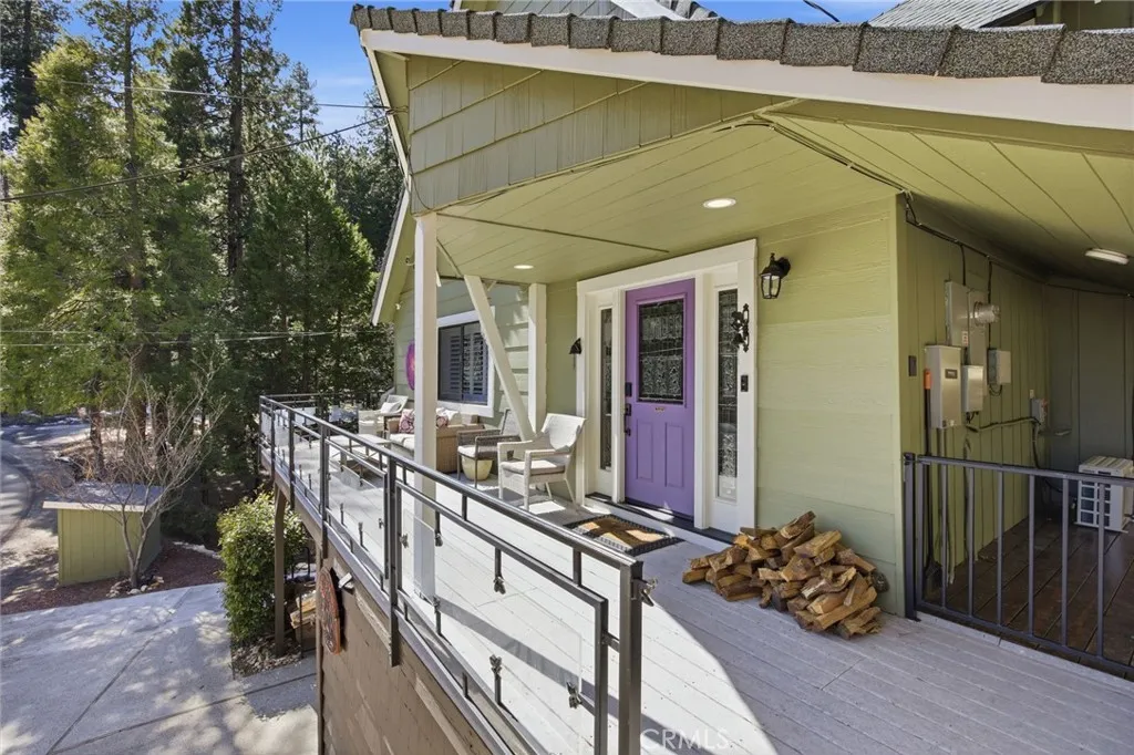 A unique lake rights property located just past Grass Valley Lake Park, on the corner lot of Brentwood and Sonoma, is situated directly across from a forest trailhead. This sage green, modified A-frame combines contemporary design with striking architectural features like dormers and a beautiful portico. The interior boasts a wide front door with beveled glass leading into a spacious living room featuring a modern horizontal stone fireplace. The main level offers an open floor plan with a gourmet kitchen including quartz counters paired w/white brick backsplash, custom cabinetry, bar/island, and a family-style eating area. This space opens on the front and onto the back in a multi-level decking system, including a wrap-around modern Trex deck with elegant tempered glass and Powder-coated aluminum railings. Additional features include: - Lower Levels: An extra-large landing suitable for an office or media room, a lower-level den, 3 bedrooms, and 2 full baths. - Entertainment: A ground-level game room/arcade equipped with a pool table, foosball, and Pacman. - Outdoor Space: A fully landscaped yard with terraced retaining walls, oversized Limestone pavers, a hot tub, picnic area, seasonal stream, and a pergola-covered swing. - Amenities: Fully furnished, wide-plank wood flooring, EV charger, whole-house generator, and a garage with interior entry. With a successful history of short-term rentals and plentiful parking for entertaining (up to 10 cars), this property offers a turnkey opportunity in a prime location. Garage is permitted with a mini split for cooling and heating.