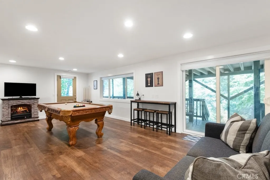 Charming 1927 Cabin in Private Crest Estates Nestled in the highly sought-after and private enclave of Crest Estates in Lake Arrowhead, this timeless 1927 cabin offers the perfect blend of historic charm and modern upgrades. Tucked away in a storybook setting surrounded by towering pines and dogwood trees, this serene retreat is ideal for peaceful vacations or full-time mountain living. Less than a mile away from the village on nearly a 1/2 acre lot. The warm and inviting interior features original hardwood floors and a beautiful stone wood-burning fireplace that anchors the cozy living space. The main level offers a spacious primary suite with its own ensuite bath, a galley-style kitchen, and a convenient laundry space. Go outside onto the large main-level deck to take in the tranquil forest and peekaboo lake viewsperfect for entertaining or enjoying quiet mornings. Downstairs, you'll find a generous playroom complete with its own bathroom and direct access to a second expansive deck, offering additional space to relax or host guests. There's parking for 3-4 vehicles, and the low association fee makes ownership easy. Bonus: the pool table is included! Experience the magic of Crest Estatesa hidden gem where nature, privacy, and history come together.