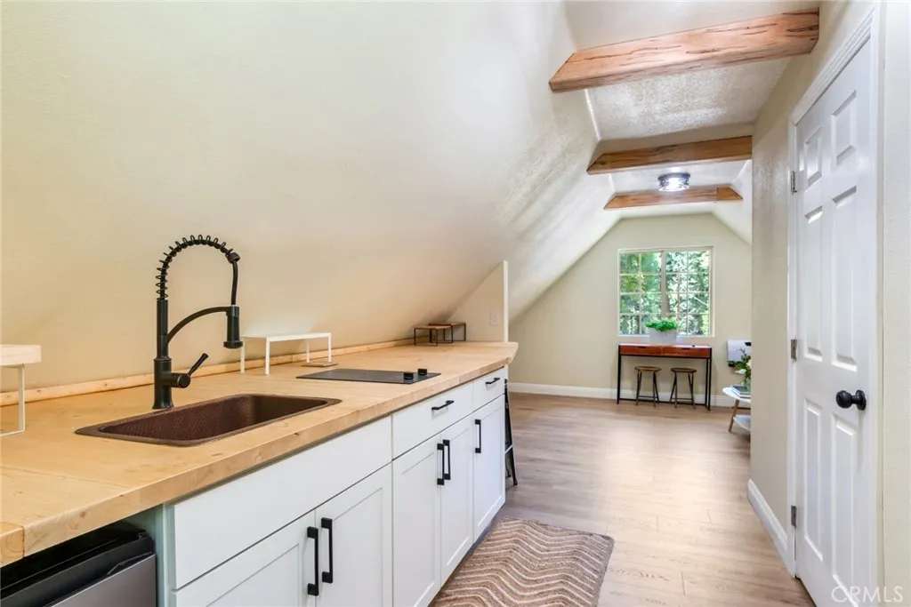 Discover the charm of this exquisite cottage, nestled in the highly sought-after Crest Estates, just a stone's throw from the picturesque Lake Arrowhead Village and the shimmering lake. Set on over an acre of lush, tree-filled land, this property provides a serene sanctuary with the utmost privacy. The tree views from the windows is fantastic and like living in the trees and you have an actual yard for enjoying the scenery. The cottage has been lovingly remodeled to blend modern comforts with rustic elegance, featuring a spacious main house that boasts 3 bedrooms and 2.5 beautifully appointed bathrooms. Uncommon for the area, this property offers generous parking options, ensuring convenience for you and your guests. There is also addition parking located towards the bottom of the driveway. Adding to its allure is a detached 2-car garage, complete with an enchanting studio above. This charming space includes a delightful kitchenette that includes kitchen sink, 2 burner convection stovetop and a small dishwasher, making it perfect for guests or as a creative retreat. Dont miss the opportunity to call this captivating cottage your home!