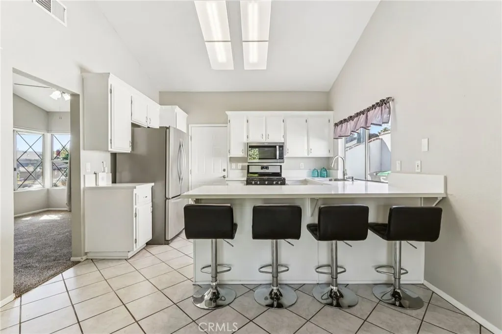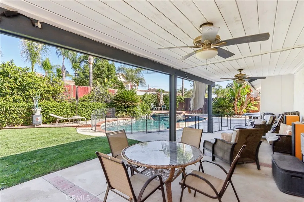 Welcome home to this charming single-story residence in the highly desirable north end of Lake Elsinore. Tucked away on a quiet street, the property offers a peaceful retreat while still providing convenient access to shopping, dining, and major freeways for an easy commute. On a nicely sized lot of approximately 7,405 sq ft, the home features ~1,410 sq ft of living space configured with 3 bedrooms and 2 full bathrooms. Built in 1989, the house has been thoughtfully updated to combine modern comfort with relaxed California living. Step inside to a light and welcoming interior: the kitchen has been remodeled with white cabinetry, quartz countertops, and stainless steel appliances a turnkey space for everyday meals or entertaining. The living areas include a family room and a formal dining or living room, joined by a dual-sided fireplace adding a warm and stylish touch. The master suite opens to the backyard through double doors and offers a beautifully renovated en-suite bath featuring a marble and travertine tiled walk-in shower, updated glass-top vanities and contemporary fixtures. Now to the highlight: the outdoor space is truly tranquil and built for enjoyment. The rear yard is designed like a private oasis lush landscaping, an oversized patio cover with ceiling fans, and a stunning in-ground pebble-tech pool complete with a waterfall feature cascading from the adjoining heated spa. Theres even a fenced side yard that could serve as a dog run, plus the wide side-drive offers RV parking potential. Green-friendly upgrades round out the package: a whole-house fan, newer H