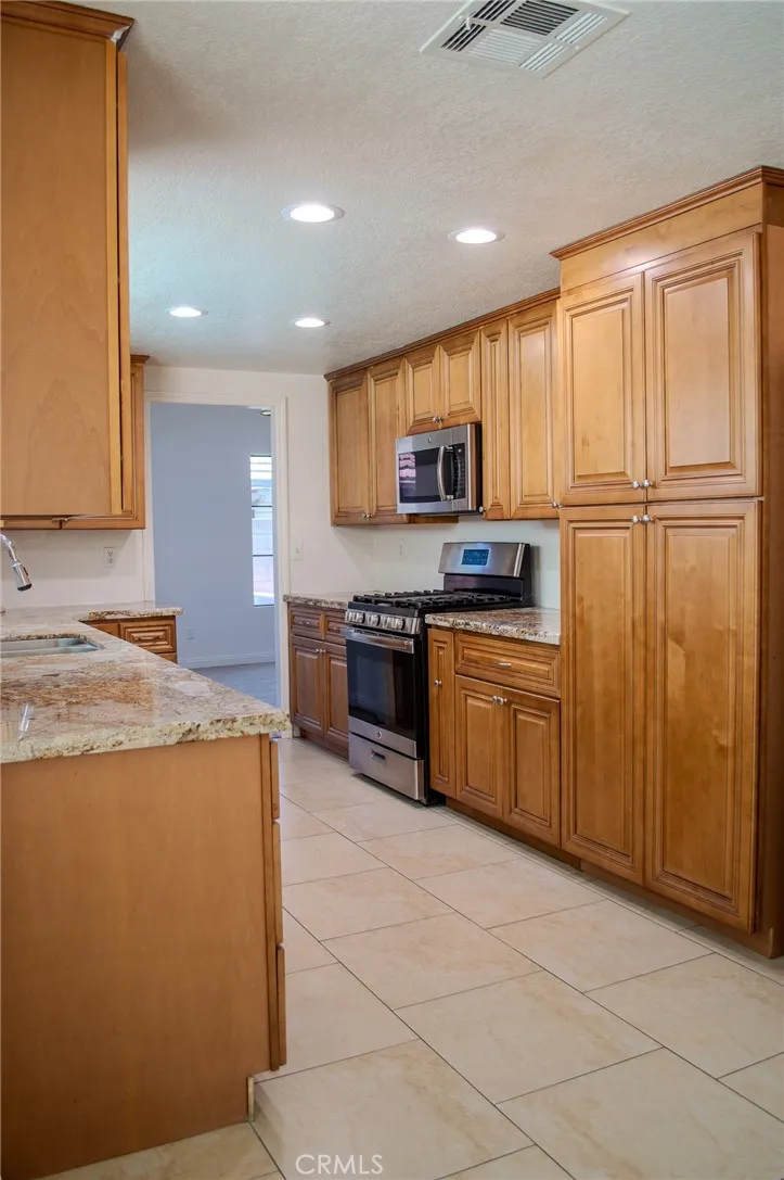 Lake Elsinore Pool Home. 4 bedrooms, 3 bathrooms, approximately 2300 square feet. 3 Car Garage, kitchen has plenty of cabinet space, granite counter tops, tall, vaulted ceilings in living room, family off kitchen has wood burning gas fireplace. Indoor laundry room, Downstairs bedroom and bath. Upstairs there is a Large master bedroom with fireplace, separate tub and shower in the master bathroom. Front bedrooms have a great view of the mountains. Out back there is a good-sized back yard with refreshing pool and spa, large, covered patio. Low maintenance yard in the front, large driveway. Schools and parks are close by, 5 minutes to the Lake.