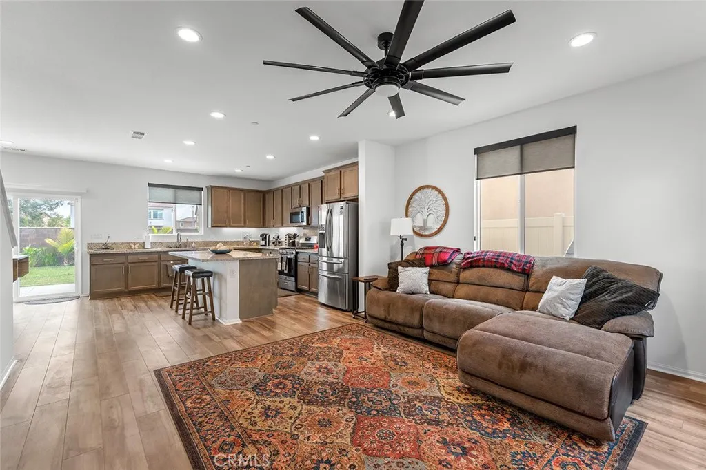 Welcome to this stunning 4-bedroom, 3-bathroom home located in the desirable Summerly community of Lake Elsinore. Built in 2021, this modern residence offers a spacious open floor plan designed for comfortable living and entertaining. The kitchen, which seamlessly flows into the living room, features an oversized island, stainless steel appliances, and ample cabinetry for storage. A convenient downstairs bedroom and bathroom provide the perfect space for guests or multigenerational living. Upstairs, you'll find a versatile loft, a laundry room, and generously sized bedrooms. The luxurious primary suite boasts a private ensuite bathroom and a walk-in closet, offering a serene retreat. The laundry room is located upstairs for more convenience and it has lots of storage. Step outside to enjoy the beautifully finished backyard, perfect for relaxing or entertaining, and best of all there's no neighbors behind you! With its contemporary design and prime location, this home offers the perfect blend of style and functionality. Experience all that Summerly has to offer, the community amenities include 2 pool areas, massive clubhouse, parks with fire pits, walking trails, dog park and more. Close to shopping, dining, freeways and entertainment. . Don't miss the opportunity to make this exceptional home yours!