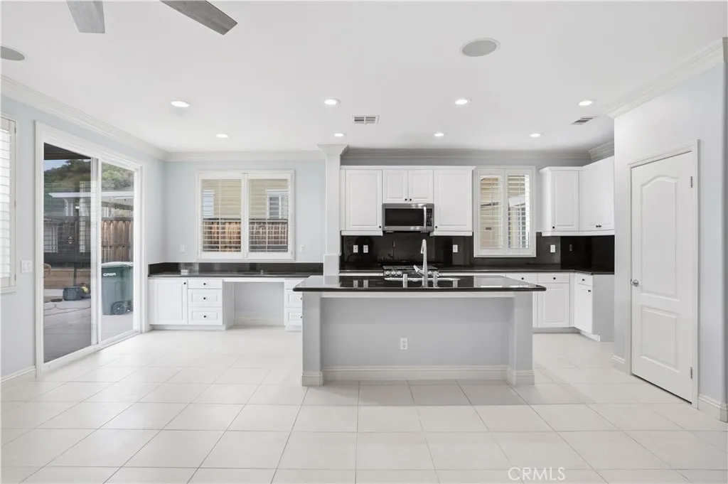 LAKE, MOUNTAIN, AND SUNRISE VIEWS! Discover elevated living in the highly coveted Cambria Hills community of Lake Elsinore. This elegant 4-bedroom, 3-bath home is thoughtfully designed for todays multi-generational lifestyle, featuring a convenient first-floor bedroom plus a versatile downstairs flex room that can serve as a fifth bedroom, private office, or guest space. Set against a breathtaking backdrop of unobstructed lake and mountain views, the home offers rare privacy with no neighbors behind and a peaceful setting surrounded by nature. Inside, timeless details include tile flooring throughout the main level, plantation shutters, and custom crown molding. The gourmet kitchen features sleek black granite countertops, modern cabinetry, and a built-in deskperfect for both daily living and entertaining. Upstairs, a spacious loft leads to an upper deck through sliding glass doors, where you can relax and take in expansive views of the rolling hills and sparkling lake. With a two-car garage and truly move-in ready condition, this Cambria Hills gem blends scenic beauty with modern eleganceoffering a serene lifestyle in one of Lake Elsinores most desirable neighborhoods!!