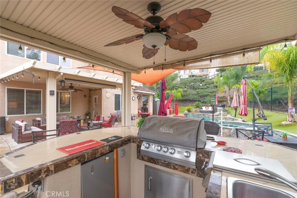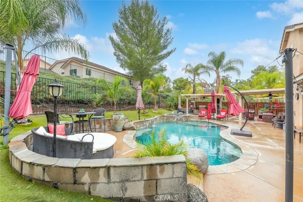 ***END OF CUL-DE-SAC POOL HOME + SOLAR*** Nestled at the end of a quiet cul-de-sac in the highly sought-after Canyon Hills community, 31923 Hyacinth Court offers the perfect blend of elegance, comfort, and resort-style living. This impressive 2,902 sqft home features 5 spacious bedrooms and 3 beautifully updated bathrooms, along with a desirable 3-car garage and energy-efficient solar. Step inside to an inviting open layout showcasing laminate wood flooring throughoutno carpet anywhereand a fully remodeled kitchen with modern cabinetry, sleek countertops, and high-end finishes. The upgrades continue into the bathrooms, each tastefully renovated with contemporary design details. The backyard is a private oasis built for entertaining, complete with a sparkling pool, built-in BBQ island, and ample space to relax or host gatherings. The low-maintenance landscaping includes turf in both the front and back yards, plus a charming putting green in the front for added fun and curb appeal. Located in a vibrant community known for its parks, pools, sports courts, and top-rated schools, this stunning home truly has everything youve been looking forstyle, space, and the ultimate indoor-outdoor lifestyle.