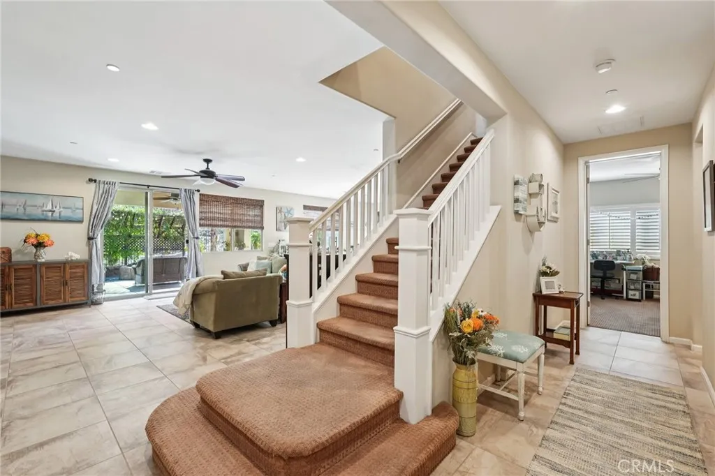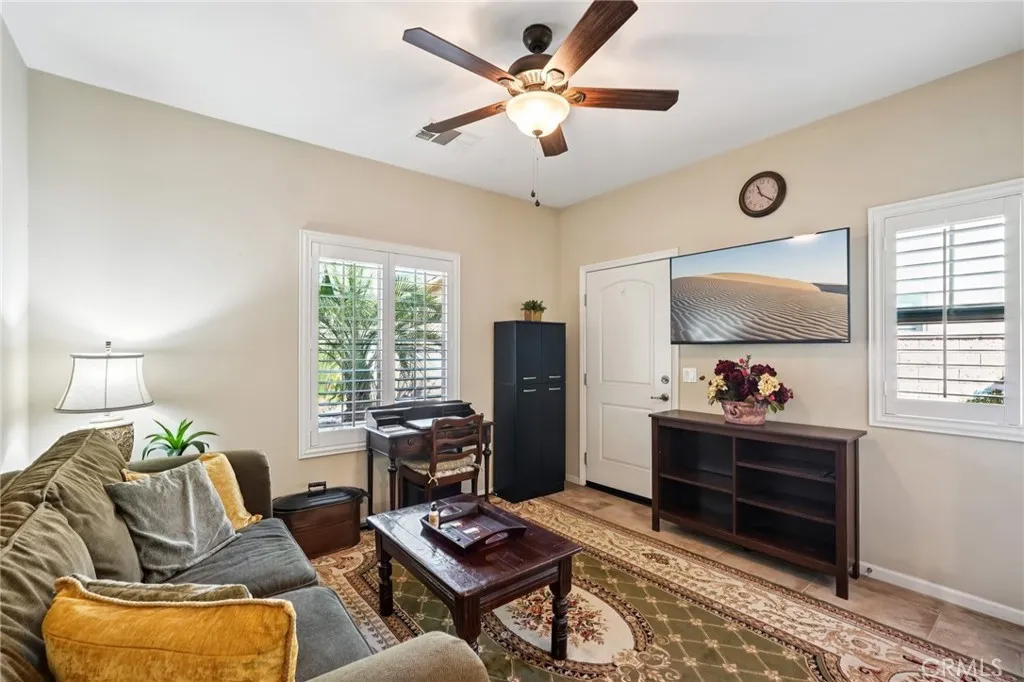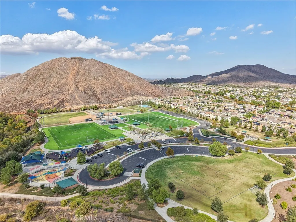 ASSUMABLE LOAN 2.25%. This an exceptional multi-generational Gen-Suite home in the highly desirable Canyon Hills community of Lake Elsinore. Filled with an abundance of natural light, this beautifully upgraded residence combines modern living, versatile spaces, and a resort-style backyard on a spacious lot with no rear neighbors, offering privacy and serene hillside views. The open-concept interior is bright and inviting, with a spacious living room flowing seamlessly into a modern, upgraded kitchen with ample counter space and a flexible dining areaperfect for daily living or entertaining. The main-level gen-suite features a private entrance, kitchenette, living room, full bathroom, and laundry hookups, providing independent living for extended family, guests, or rental opportunities. Additional flexible spaces include a downstairs bedroom currently used as a home office. Notably, theres an expansive upstairs loft, perfect for a secondary family room, game area, media lounge, or fitness zone. Comfort is enhanced with a 3-zone HVAC system, ensuring consistent climate control throughout the home. Step outside to a backyard entertainers paradise, featuring custom landscape lighting, a built-in barbecue and cooking area, fire pit, and an in-ground spa. The large neighboring lot also provides possible temporary RV parking, and the hillside setting with no rear neighbors ensures privacy and unobstructed views for relaxation and nightly star gazing. Youll enjoy walking distance to a resort-style community pool, clubhouse, sports park and Herk Bouris Elementary School, with shoppi