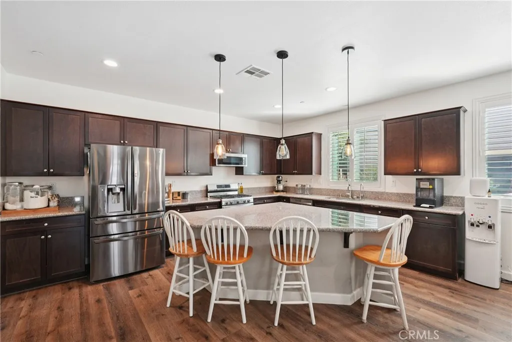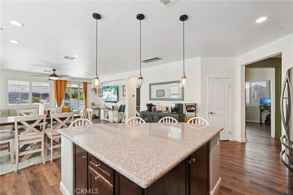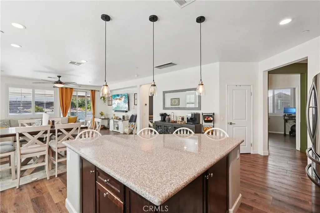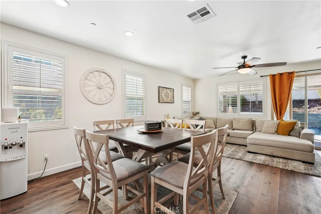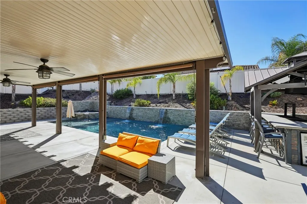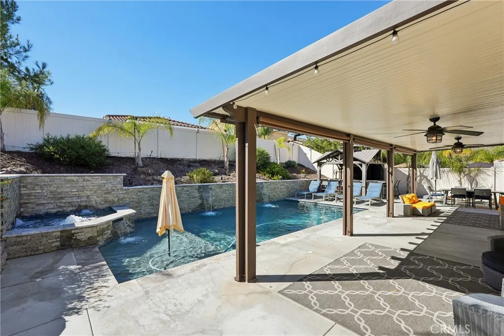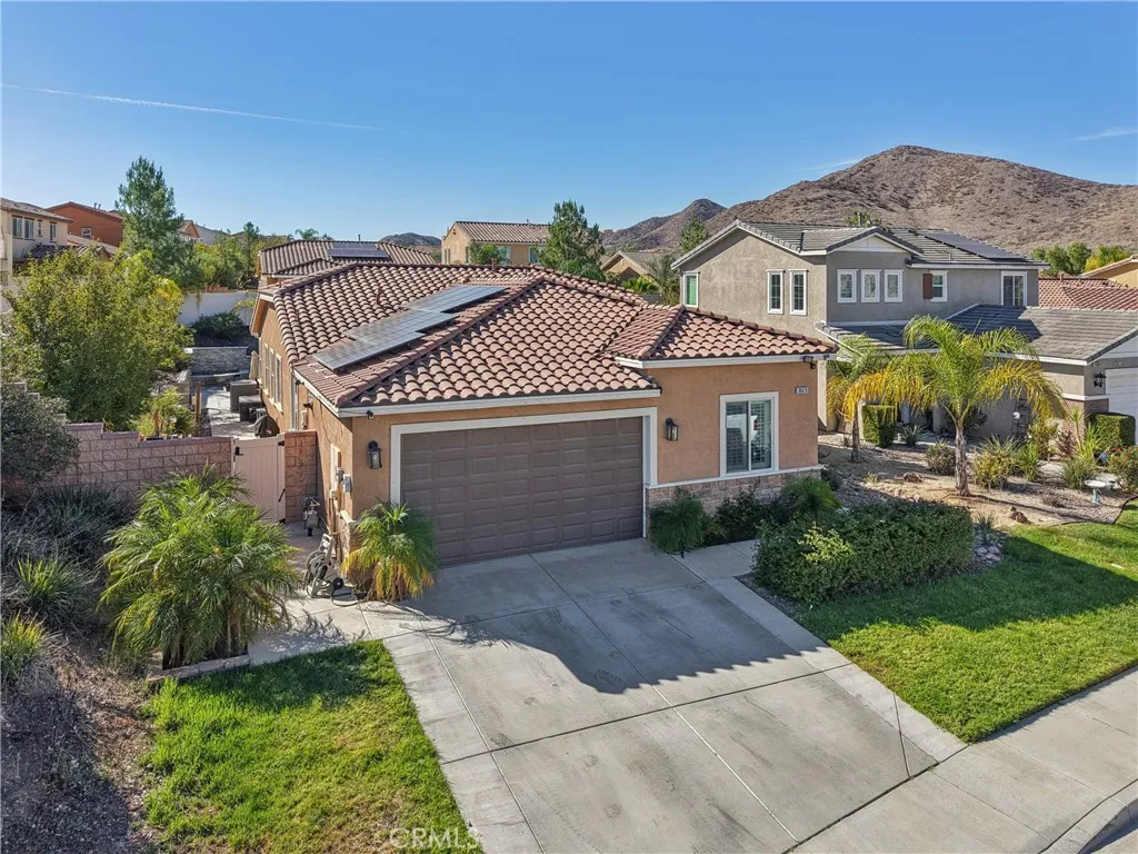 Welcome to your dream oasis home in the heart of Lake Elsinore! This stunning single-story home boasts a thoughtfully designed floor plan, perfect for both relaxation and entertaining. The spacious kitchen features elegant granite countertops, stainless steel, and a center island adorned with pendant lighting, making it a chef's delight. Step outside to your private backyard paradise, complete with a sparkling pool and spa, ideal for soaking up the sun or enjoying serene evenings under the stars. The aluminum-covered patio provides ample shade for outdoor gatherings, while the included shed offers convenient storage for all your outdoor essentials. Located within walking distance of the canyon hills community, you'll enjoy access to a variety of amenities, including parks, pool, sports courts, and picnic areas. This vibrant community offers a lifestyle that combines comfort, convenience, and the great outdoors. Don't miss your chance to make this beautiful home your own!