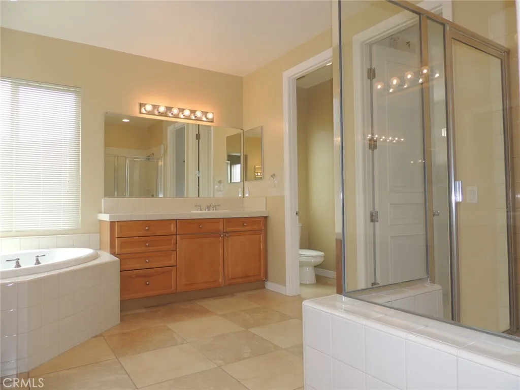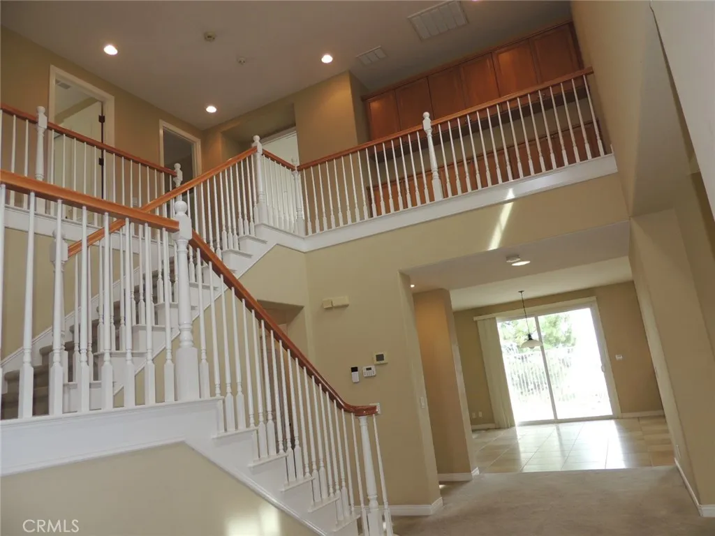 Canyon and lake view house. Entry with high ceilings. Living room with fireplace adjacent to formal dining area. Downstairs half bath with vanity sink and toilet. Large and open kitchen next to family room with built in ceiling speakers and fireplace overlooking fenced backyard. Huge kitchen with tiled counters, stainless steel hood, microwave, and oven. Kitchen island with cabinets. Kitchen cabinets with pull outs. Upstairs master bedroom with retreat opens to balcony overlook canyon and lake. Master bathroom with separated shower and tub, his and her vanity sinks and walk-in closet. Jack and Jill bedrooms with shared bathroom. Carpet flooring throughout the house except kitchen, bathrooms, laundry room and kitchen with tile flooring. Enjoy Tuscany Hills HOA offers tennis court, volleyball court, basketball court, pools/spas, gated children playground, club house with amenities. 3 car tandem garage with direct garage access. Laundry room conveniently located upstairs with sink. Dual outdoor AC condensers. Backyard covered porch area with view.