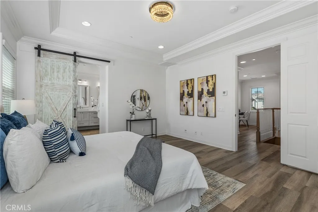 Move-in-ready with low property taxes, no Mello Roos & large lot. This single-family home offers up to 5 bedrooms (currently configured as 4+ a large bonus room). Built by Toll Brothers, personally customized during construction by the current owner, a Toll Brothers executive, this one-of-a-kind home was designed for seamless indoor/outdoor entertainment and truly stands apart for its exceptional location. 1 of only 2 true corner-lot homes in the community, it sits on a highly desirable elevated lot along a single-loaded street, surrounded by trees, designed to maximize privacy, yard space, and mountain views. A two-story foyer welcomes you into the light-filled interior, while 12-foot Andersen folding doors off the great room open to a large yard, creating a California-style experience surrounded by birds singing in the trees. The dining area opens to the deck for alfresco meals, and the integrated surround sound system extends outdoors for effortless entertaining. The chefs kitchen showcases luxuriously light colors with upgraded quartz countertops & premium custom cabinetry extending to the ceiling, featuring soft-close drawers & doors, slide-out pantry shelves, lazy Susan corner storage, under-cabinet lighting, and an expansive buffet island ideal for casual dining. The kitchen also offers convenient direct garage access. Upstairs, the primary suite features a spa-inspired retreat with a rain shower head, frameless glass enclosure, floating cabinetry, separate soaking tub, dual vanities, quartz counters, and floor-to-ceiling designer tile. Secondary bedrooms include cus