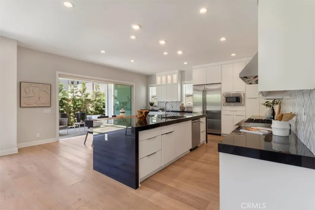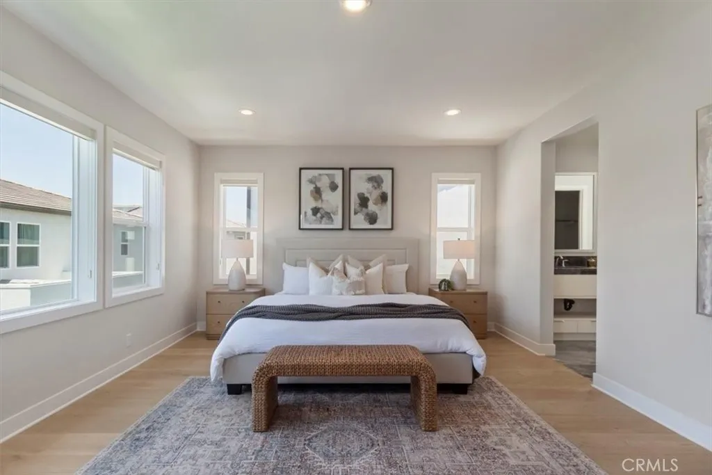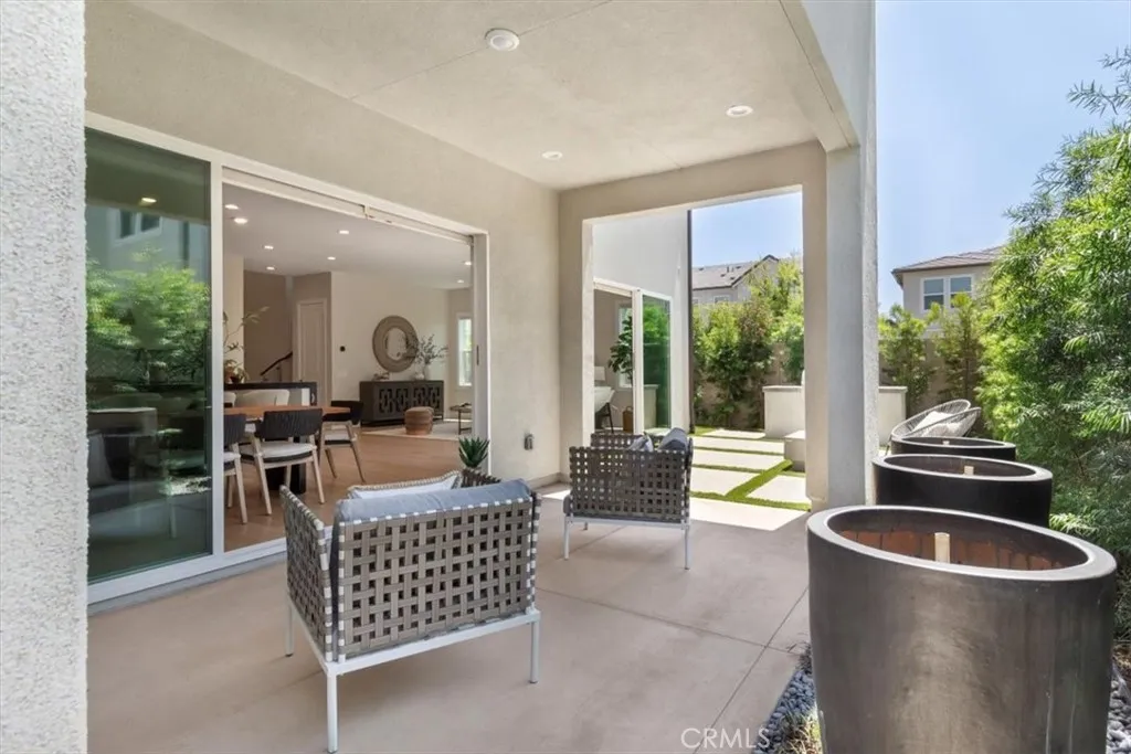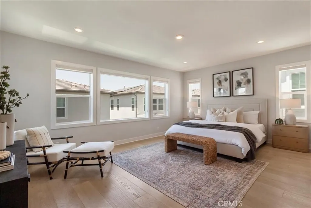 PRICE IMPROVEMENT!!! Step into luxury at 101 Mulberry. With over $300K in DESIGNER UPGRADES, this pristine CORNER LOT, 5 bedroom house offers the perfect blend of CONTEMPORARY ELEGANCE and comfortable living. Nestled in the sought-after MEADOWS NEIGHBORHOOD, this property is sure to impress with its spacious layout, modern amenities, and convenient access to everything you need. The OPEN-CONCEPT KITCHEN is a chef's delight, complete with top of the line Jenn-Air stainless steel appliances, beautiful QUARTZ countertops with herringbone backsplash, and a large WATERFALL ISLAND perfect for casual dining. The first floor has one bedroom and a full bathroom. The seamless indoor-outdoor flow with STACKED SLIDING GLASS DOORS connects the elegant great room to a private backyard oasis with a BUILT-IN BBQ and FIREPIT-ideal for hosting or relaxing in peace. Retreat upstairs to a huge FLEX SPACE, secondary bedrooms with UPGRADED PRIVATE ENSUITE BATHS and a LUXURIOUS PRIMARY SUITE featuring spa-like ensuite bathroom, dual vanity sinks, luxe shower with seat, a large soaking tub, and a generous walk in closet. Additional highlights include upgraded HARDWOOD FLOORING THROUGHOUT, glass stair railings, recessed lighting, surround sound in the great room, EV charging system and FULLY PAID OFF SOLAR! Every detail has been meticulously curated to offer both comfort and sophistication. Enjoy resort-style amenities within The Meadows, including a clubhouse, multiple pools and spas, dog parks, sport courts, pickleball and scenic biking and hiking trails. LOW HOA DUES and NO MELLO ROOS! Dont miss
