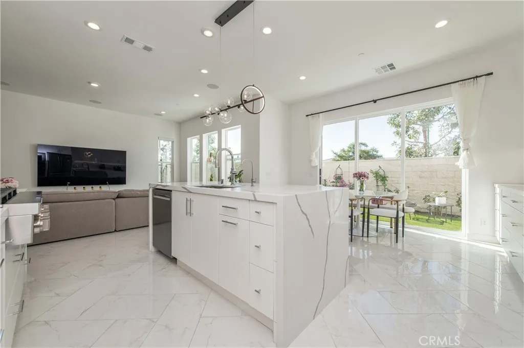 Welcome to 131 Reyes Alley in the prestigious Meadows community of Lake Forest. This highly upgraded 5-bedroom, 4-bathroom residence spans 2,904 sq. ft. across three levels. The layout is sophisticated yet elegant with nearly 200k in builder upgrades including white tile floor, marble counters, and wooden stairs. The living room and fully upgraded kitchen are on the first floor with epoxy garage floor. Master bedroom in on the second floor. Also, the solar system is paid off. There is a game room on the third floor. The Meadows community offers many resort-style amenities, including a spacious recreation center, two spas, two pools, cabanas, 2 dog parks, sports fields, basketball, pickleball and volleyball courts. In addition, enjoy the nearby miles of biking, and hiking trails close to Meadows Community. It is also close to Home Depot, 24-hour fitness center, shopping centers, and the Irvine Spectrum shopping Plaza.