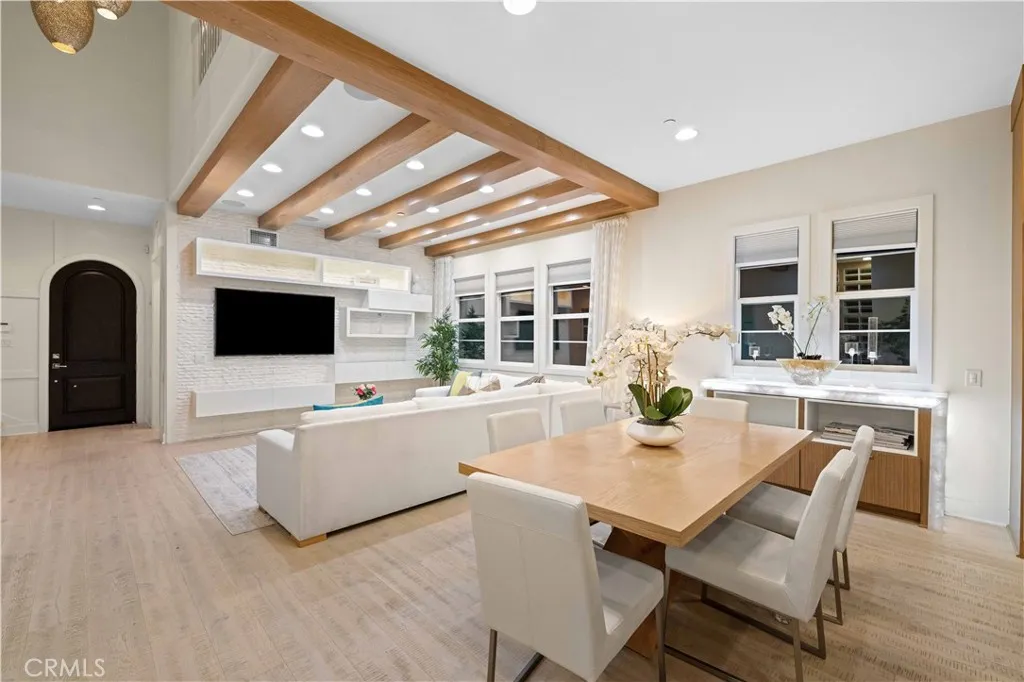 The luxurious three-story furnished MODEL HOME nestled in the gated community of Parkside. This beautiful corner-lot home boasts 4 bedrooms, 4.5 bathrooms and 2 car garages. As you enter the formal foyer, you will be greeted by the spectacular OPEN FLOOR PLAN with soaring 20 ft ceilings, rich wood flooring, and dramatic beams adorning the formal dining and living area. The California Room and backyard offer a fireplace, built-in barbecue, water feature, TV-mount, and plenty of additional space for outdoor dining and lounging. The second floor, Large master suite with a large walk-in closet, separate bathtub & shower, dual-sink vanity is gorgeously upgraded. The third floor has a spacious multifunctional bonus room, powder room, and desirable covered balcony - perfect for entertaining family and friends year-round! The resort-style clubhouse features a pool and two spas, cabanas, BBQ, and dog park, and A huge sports park right next to the community. Take huge advantage of Easy Access to 5 and 241 Freeway, Foothill Ranch Town Centre, and Award-winning schools, NO MELLO-ROOS, and low HOA Dues! Welcome to make your new home anytime.