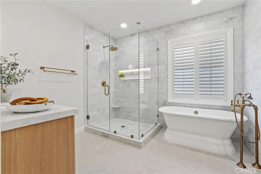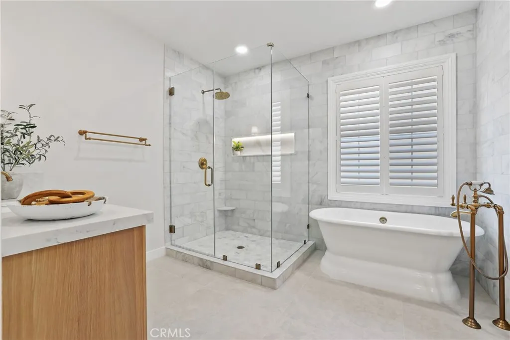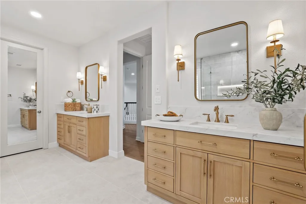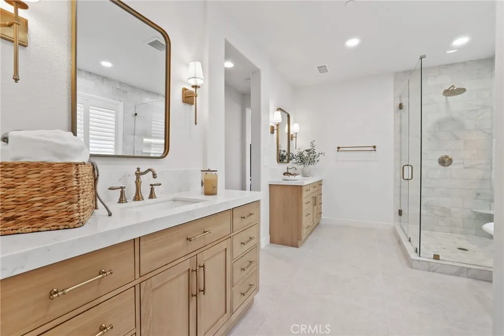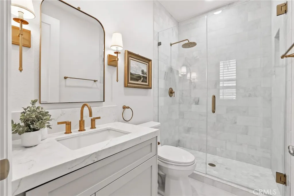 Custom Design and Breathtaking Aesthetics are the Hallmarks of this Exceptional Residence! Live your Dream Lifestyle at 16 Juniper, an Exquisite Warm Architectural Residence in Baker Ranch. This Newly Remodeled Masterpiece is a Quintessential Blend of Sophistication and Design, Tailored for the Discerning Buyer with a Palate for On Trend Serene Luxury. As you enter through the Solid Wood Tuscan Door you are Greeted with Soaring Two-Story Ceilings, Grand Spiral Staircase & Wide Plank European Oak Wood Flooring that Seamlessly Blends Comfort & Functionality. Experience Effortless Elegance in the Chefs DREAM KITCHEN where Serene Simplicity meets Refined Functionality. The Warm Organic kitchen pairs Floor to Ceiling Cabinetry with Neutral Calcatta Elysio Quartz Countertops & Backsplash, Fireclay Sink Basin, Designer Brass Accent Hardware, Wolf Appliance Package w/ Built In Subzero Refrigerator & Sculptural Lighting to Create a Calming yet Elevated Heart of the Home. From your Picturesque Formal Dining Room Area, push open the Sliding Doors for a Fresh Breeze that Perfectly blends to the Serene Lush Landscape of your Outdoor Oasis. The Open Concept Great Rm provides the perfect ambiance for entertaining with Built-In Surround Sound Speakers, Custom Restoration Hardware Iron Curtain Rods, Solid Wood Wainscoting and Neutral Toned Limestone Fireplace. The Downstairs Bedroom and Full Bathroom has been Redesigned with New Calcatta Premata Quartz Countertops, On Trend Moen Brass Hardware, White Marble Shower Tile, Designer Accent Mirrors & Lighting. Follow the Stunning Spiral Staircas