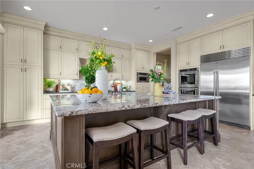 Welcome to 17 Calliope A Luxurious Retreat built by Toll Brothers with Unmatched *Panoramic Views* in the Prestigious Baker Ranch Community. Discover elevated living in this exquisite 5-bedroom, a large loft and 5.5-bathroom estate, offering 4,224 sq ft of thoughtfully designed space with upgraded floorings. Perched on a premium lot with sweeping panoramic views, this home seamlessly blends modern elegance with exceptional functionality. Step through the grand foyer, where soaring high ceilings and a striking circular staircase make a dramatic first impression. The open-concept layout is enhanced by 2 glass bi-fold doors, creating a seamless transition between indoor and outdoor living. Relax and entertain year-round under the covered California room with built-in BBQ while soaking in breathtaking sunset vistas. The gourmet kitchen is a chefs dream, featuring an oversized island, high-end appliances, built-in refrigerator and beautiful backsplash. Its open design flows effortlessly into the living and dining areasperfect for entertaining friends and family. A private first-floor bedroom with an en-suite bath offers convenience and privacy for guests or multigenerational living. Upstairs, a large loft provides flexible space for a media lounge, playroom, or home office. The luxurious primary suite includes a tranquil sitting area (ideal for a second office), a spa-inspired en-suite bath, and direct access to a spacious covered deck with forever views. Each of the secondary bedroom suites is larger in size and has generous closet space. Direct access to 3-car garage with epo