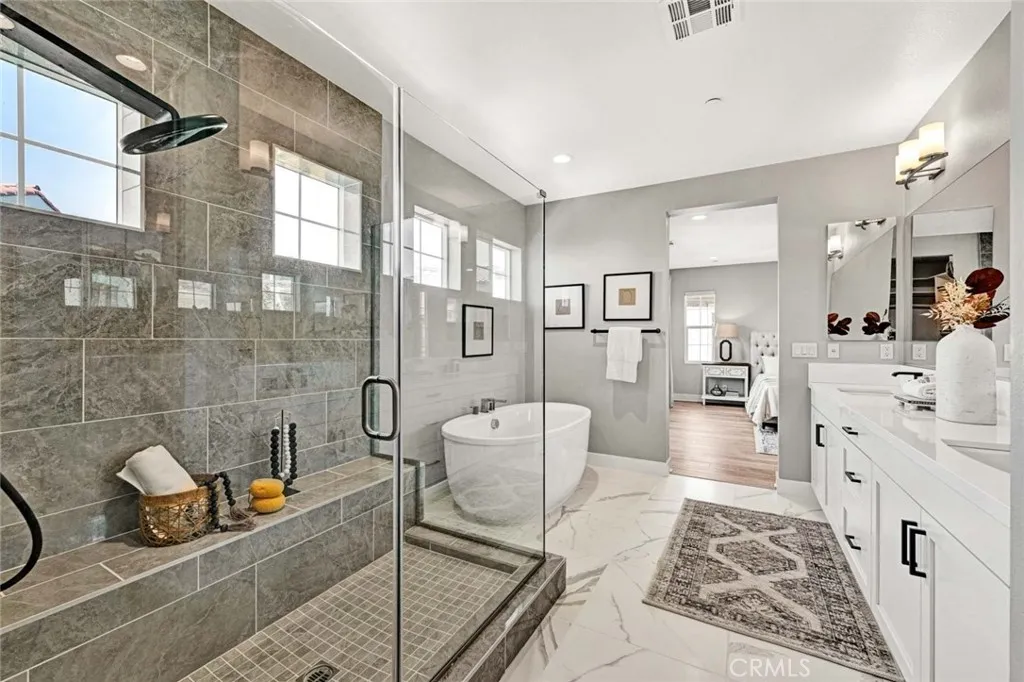 Welcome to 1865 Aliso Canyon Drive, a Fully Remodeled Dream Home Located in the Highly Sought After Iron Ridge Community of Lake Forest. Newly Built in 2020, this Turn-Key Home Sits on One of the Best Lots in the Community, Showcasing Four Bedrooms, Three Bathrooms (One Bedroom and Full Bathroom Located on the Main Floor), Upstairs Loft, Luxury Vinyl Plank Floors, New Carpet, New Interior Paint, High-End Window Coverings, and Maximum Curb Appeal. The Living Room Features Built-In Speakers, Backyard Views, and Opens to the Dining Area. The Open-Concept Kitchen Boasts an Island with Seating, Quartz Counters, Stainless Steel Appliances, Farmhouse Sink, Open Shelving, Pantry, and Dining Area with Bi-Fold Doors to the Backyard, Providing the Best of Indoor/Outdoor Living. The Spacious Master Suite Showcases Dual Vanities, Frameless Glass Walk-In Shower, Soaking Tub, and Walk-In Closet with Custom Organizers. The Second Floor Loft is Perfect for a Play Room or Home Office Space. Convenient Second Floor Laundry Room with Sink and Storage. Direct Access Two Car Garage with Epoxy Floors. The Remodeled, Low Maintenance Backyard Includes a Covered Patio with Recessed Lighting, Hardscape, Built-In Seating Area with Firepit, Grass Area, and Lush Landscaping. Enjoy the Countless HOA Amenities: Resort-Style Pool/Spa, Park/Playground, Walking Trails, Clubhouse, Greenbelts, BBQs and Dog Park. Easy Access to Numerous Hiking/Biking Trails, Foothill Plaza Shopping/Dining, and 241/261 Toll Roads. 1865 Aliso Canyon Drive is a Must See!
