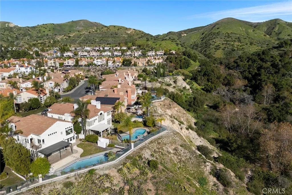 Experience the pinnacle of luxury in this meticulously reimagined Roxford Crest estate. Situated on a premier, oversized bluff lot, this 5-bedroom, 5.5-bathroom residence offers 3,730 sqft of sophisticated living space, masterfully blending contemporary design with unrivaled canyon and mountain views. Beyond the custom double-door entry, an airy, open-concept floor plan unfolds with soaring ceilings and brand-new waterproof flooring. The heart of the home is a chefs dream kitchen, featuring floor-to-ceiling self-closing cabinetry, premium stainless steel appliances, and a dramatic waterfall island topped with modern quartz. The kitchen flows seamlessly into the light-filled family room, anchored by a sleek fireplace and framed by oversized windows that invite the outside in. The versatile layout includes a main-floor guest suite with a fully remodeled bath, ideal for visitors or multi-generational living. Upstairs, a massive loft leads to the private quarters, including a primary sanctuary that defines indulgence. Enjoy a private balcony with breathtaking views and a spa-inspired bath clad in custom marble, complete with a freestanding soaking tub, frameless glass shower, and high-tech amenities. The entertainers backyard is a resort-style retreat, featuring an expansive pool deck, private pool, and lush lawnall set against a backdrop of spectacular panoramic vistas. New flooring, designer paint, and quartz surfaces throughout. High-tech primary bath and upgraded laundry room with built-in cabinetry. Close to Foothill Ranchs renowned parks, hiking trails, and top-tier schoo
