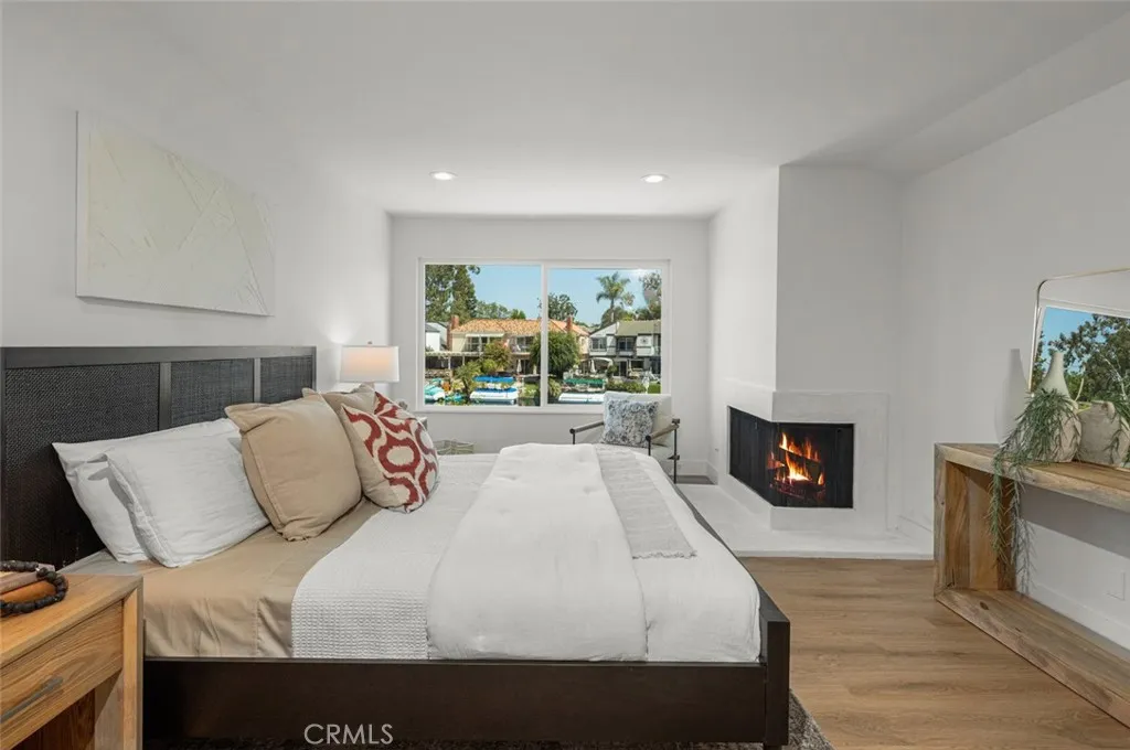 Anchored on the quiet shores of Hidden Lakes, this refined home offers a dialogue between architecture and environment, an intentional balance of openness, light, and private retreat. Conceived as a place of calm and clarity, the residence is defined by its clean lines, double-height ceilings, and generous glazing that invites the shimmering lake into every moment of daily life. Upon entry, a sense of quietude is immediate. The palette is restrained, white walls, wide oak-toned floors, and a rhythmic interplay of natural textures evoke warmth without ornament. The living room sits as the heart of the home, where a contemporary fireplace anchors the space, and expansive glass doors dissolve the boundary between inside and out. Framed views to the water create a constant visual connection to the lake, reinforcing the homes rhythm of repose and retreat. The kitchen and dining zones unfold fluidly, forming an informal gathering space thats both functional and beautifully composed. With custom cabinetry, modern hardware, and soft stone finishes, the kitchen is grounded yet inviting, a reflection of the broader material sensibility found throughout the home. A guest bedroom and full bath occupy the lower level, offering flexibility and ease of access. Upstairs, the private quarters continue the theme of serenity. The primary suite is oriented toward the water, with large picture windows offering a front-row view of the lakes morning reflections, afternoon shimmer, and evening stillness. Two additional bedrooms complete the upper level, each offering their own secluded comfort. St