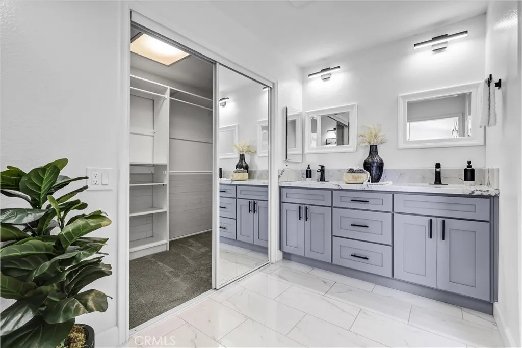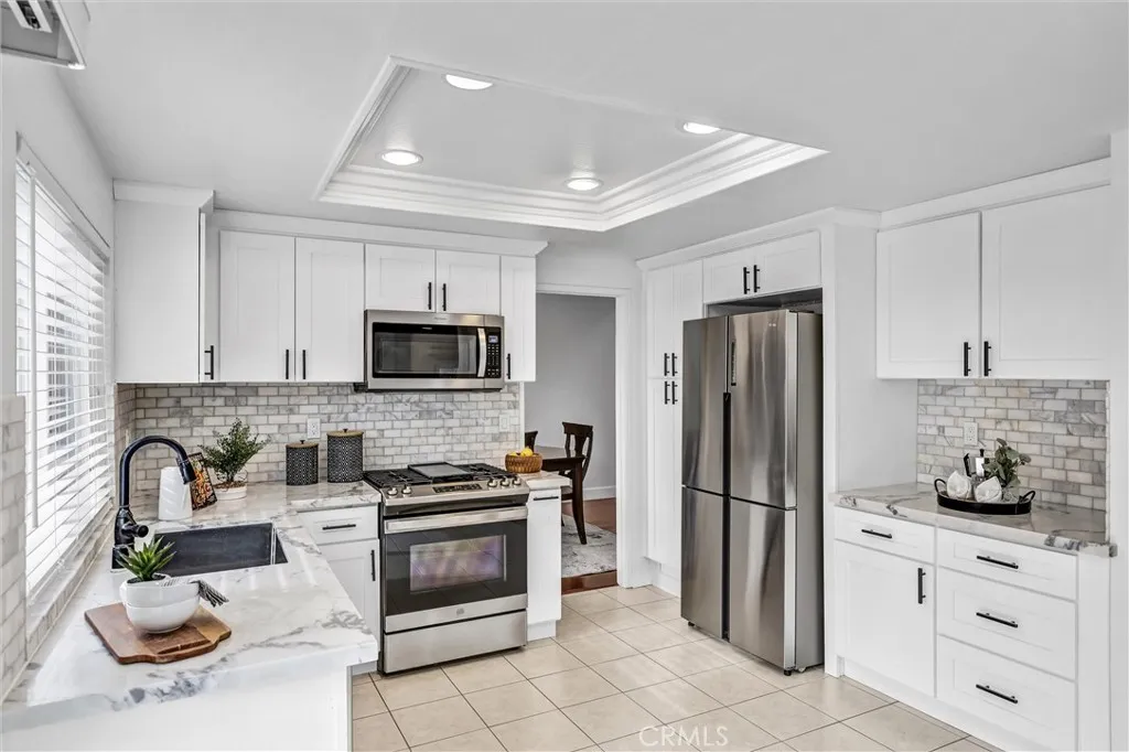 Nestled in the heart of Lake Forest, this stunning, completely renovated home will take your breath away! Located on a premium corner lot of 5,300 square feet, this home features 4 upstairs bedrooms, 3 bathrooms, and 3-car attached garage along with 2,140 square feet of living space. The home is located in the Amazing grand entrance with vaulted ceilings, skylights, & the beautiful wood floors. Some of the incredible upgrades include a renovated chef's kitchen that has upgraded white shaker cabinets, quartz counters, custom marble back splash, stainless-steel appliances, sink, recessed lights, and updated fixtures. The open floor plan connects the kitchen to the sunken living room, formal dining room, & upgraded bar area that is perfect for entertaining. Cozy fireplace. Scraped ceilings throughout with recessed lighting. Inside laundry with closet. All baths are amazing with New white shaker cabinets, quartz counter tops, tile floors, mirrors, toilets, & custom showers with updated fixtures. Huge master suite with sliding glass door that has access to oversized deck. Master also has vaulted ceilings and a ceiling fan. Master bath has double sinks & custom marble on floors & shower. All bedrooms have newer plush carpet. Other upgrades include dual pane windows, newer HVAC system, 26 panel 9kW Lease Solar System ($147 per month), insulated garage doors, and tons of cabinets in garage for storage. Walking distance to La Madera Elementary School and El Toro High. You'll also enjoy the benefits of being a member of the Sun and Sail Club which includes access to pools, spas, exer