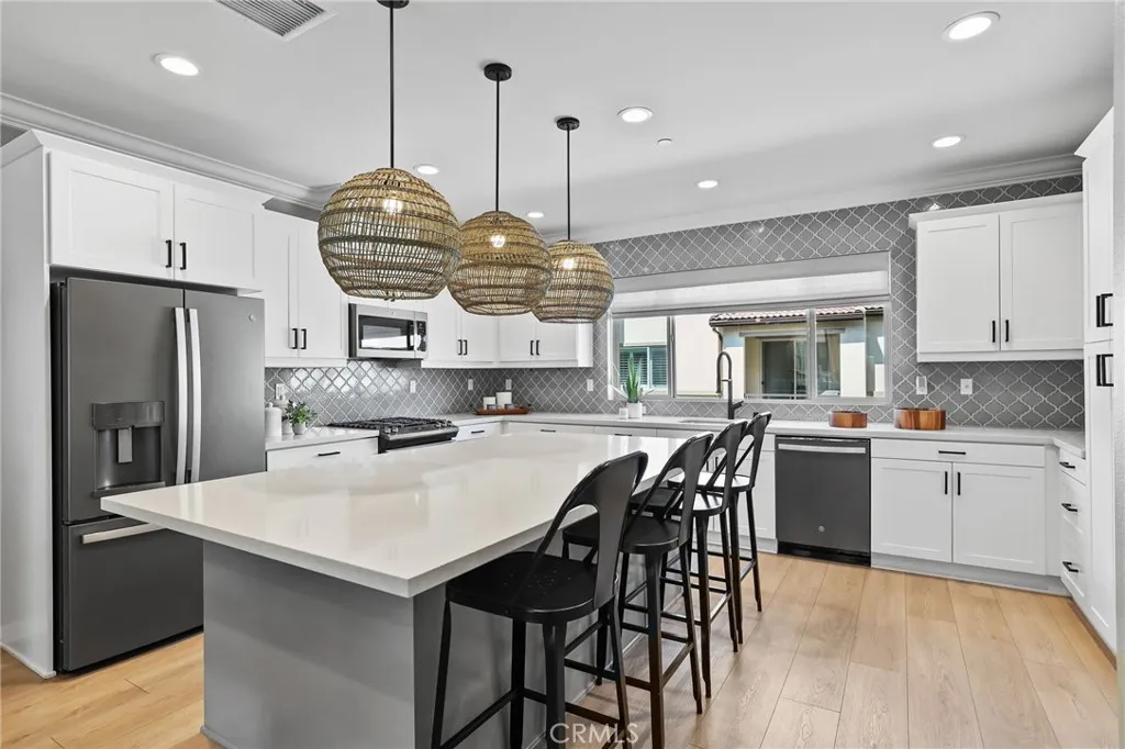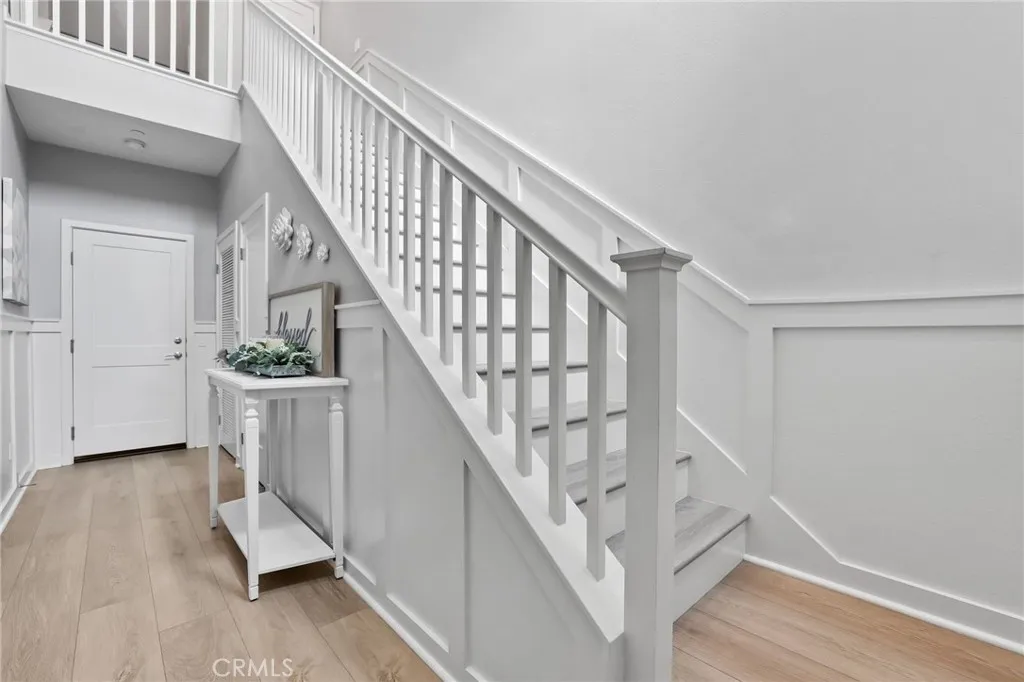 WOW! Discover the Many Details and Stunning Upgrades complimenting this Modern 2021 Built SPACIOUS 2,402 SQFT Townhome. Located in the GATED Resort-Style Community of Ironridge on a PRIVATE PREMIUM LOT, and featuring 4 BEDROOMS + 3.5 BATHROOMS & 2 LAUNDRY ROOMS this Stylish Residence has EVERYTHING FOR THE MODERN DAY BUYER! A Light & Bright interior with Soaring Ceilings greets you upon entry to provide the perfect ambiance for your daily routine. The Highly Desirable Spacious DOWNSTAIRS FULL BEDROOM SUITE features Pre-Plumbed utilities for a Kitchenette, a spacious Full Bathroom, Living Room and its own Laundry Room! Designer Paint, Crown Molding, Decorative Trim, Wainscoting, Custom Rollershade Window Coverings and LUXURY VINYL FLOORING THROUGHOUT THE ENTIRE HOME continues to set the tone for this Gorgeous Upgraded Residence. Upstairs you will find the heart of the home with the LUXURIOUS SPACIOUS KITCHEN featuring Neutral Quartz Countertops, Huge Center Island, Stainless Steel Appliances, Crisp White Cabinets, Designer Tile Backsplash, Convenient Coffee Bar, Charming Bay Window, and Designer Pendant Lighting. The comforts of an Open Concept Living Room are highlighted with High Ceiling, an abundance of natural light, Beautiful Covered Balcony and Custom 74" Fireplace Electric Fireplace creating your very own at home sanctuary. Upstairs you will find an 3 Additional Bedrooms, Including the Primary Suite and Spacious Laundry Room. Indulge within the Comforts of a Calm Atmosphere in your Primary Suite Retreat offering plenty of Space and Natural Light throughout. Continue i