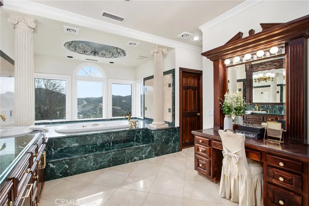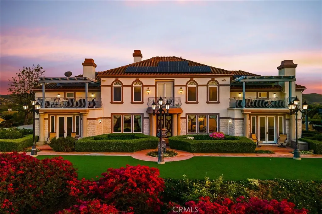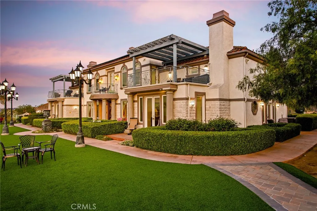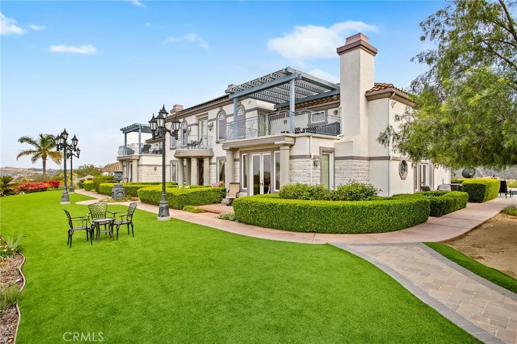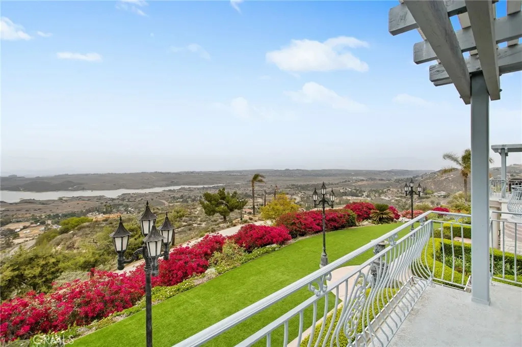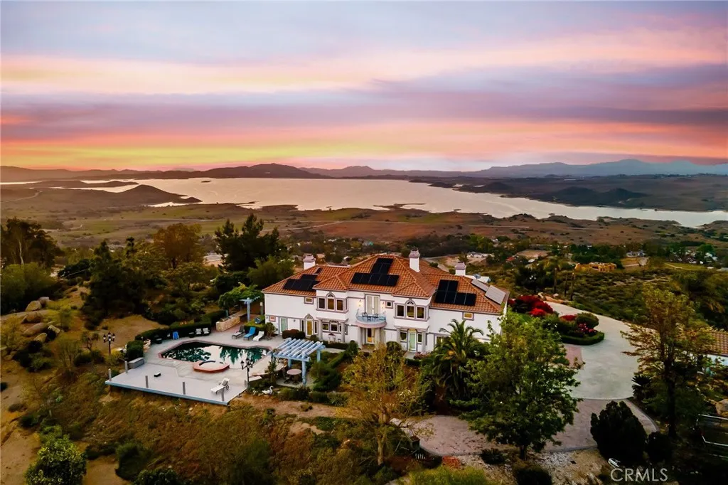 Welcome to 20976 Bentley Dr, Perris, CA 92570 a stunning luxury estate in the sought-after Lake Mathews area. Set on over 4 acres of fully fenced land, this custom-built home offers breathtaking panoramic views of Lake Mathews, the surrounding mountains, and sparkling city lights all with no HOA and low taxes. This elegant 3,894 sq ft residence features 5 spacious bedrooms, 3.5 beautifully appointed bathrooms, and an expansive layout designed for both everyday living and grand entertaining. A private gated driveway leads to the home, where youre greeted by tile flooring, detailed crown molding, and a grand entry with artistic architectural touches throughout. The chefs kitchen opens to a welcoming family room with a fireplace and includes high-end stainless steel appliances, granite countertops, and custom cabinetry. Formal living and dining rooms, along with a charming library/office, provide ample space for work, hosting, or relaxation. The primary suite is a private retreat with its own sitting area, a double-sided fireplace, and a spa-inspired bathroom featuring a marble-encased tub surrounded by Roman columns and large picture windows capturing the scenic views. Step outside to enjoy the California lifestyle with a pebble-finished pool and spa, multiple patios and terraces, two custom cabanas, and a built-in BBQ island all surrounded by citrus and fruit trees, colorful landscaping, and 180-degree lake and mountain views. This property can comfortably sleep 14, offering incredible short-term rental potential. Additional features include a 3-car garage, a separate 15x
