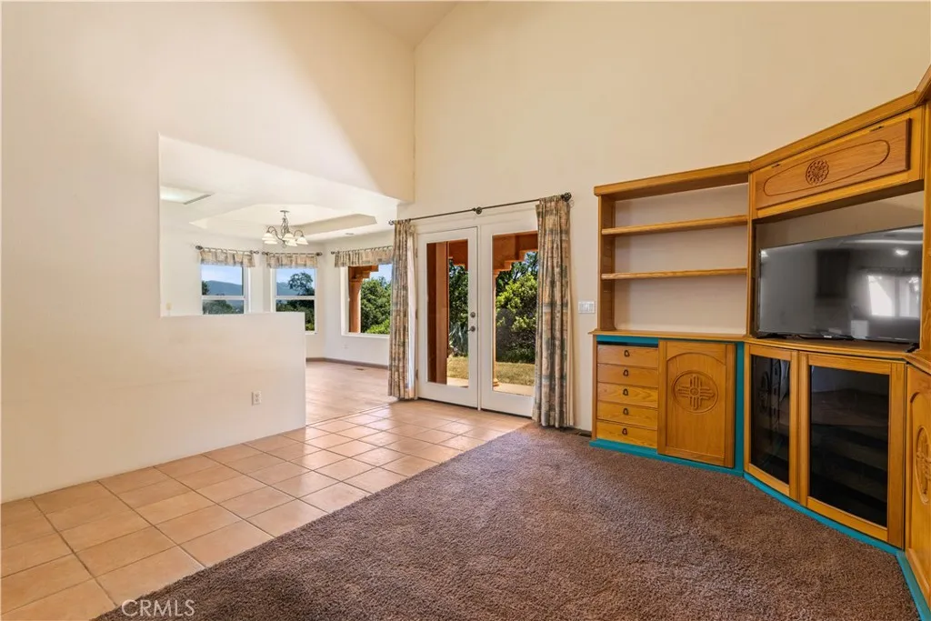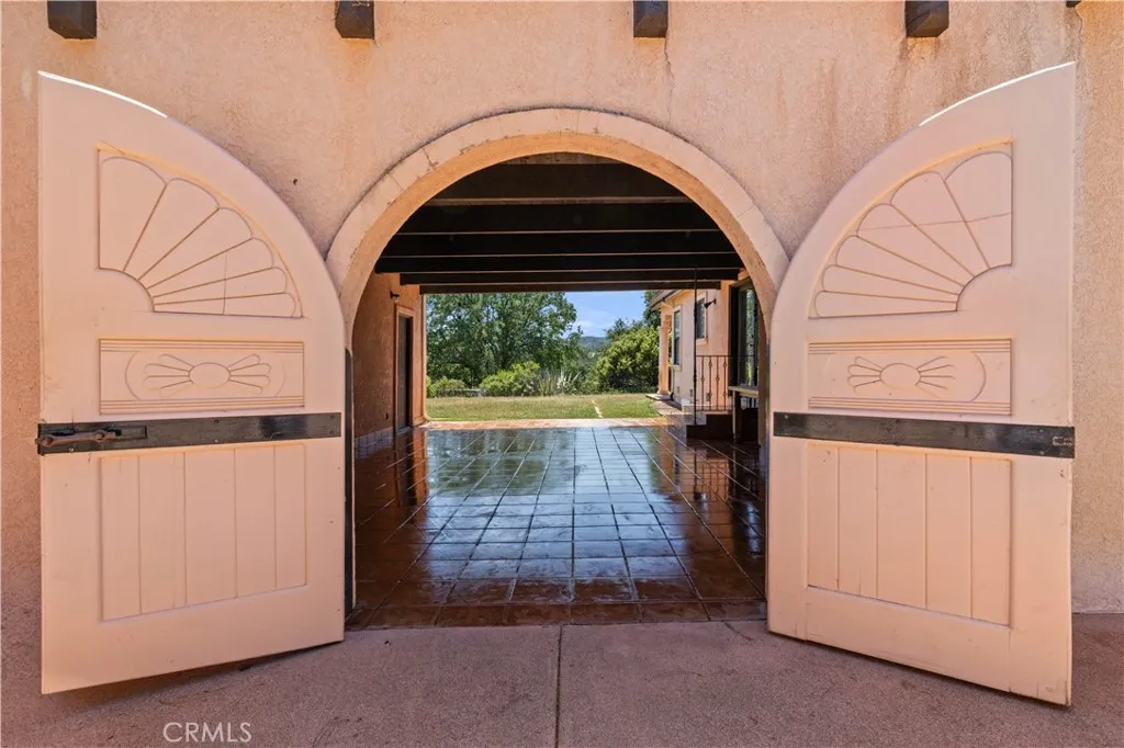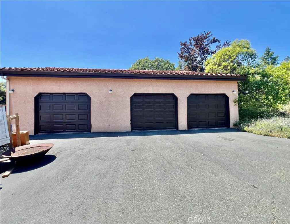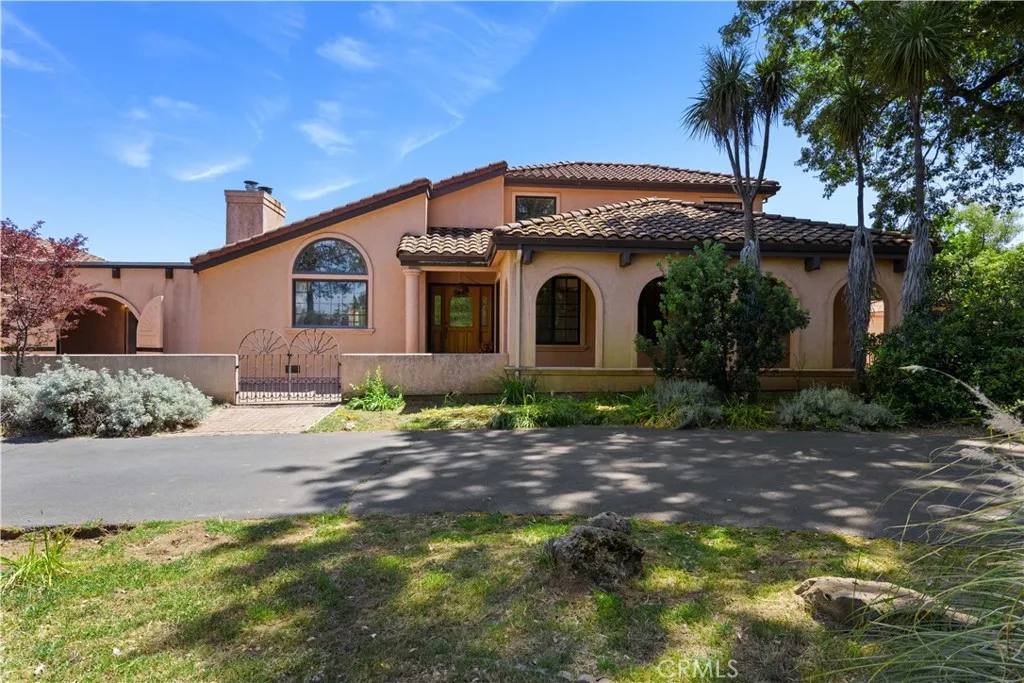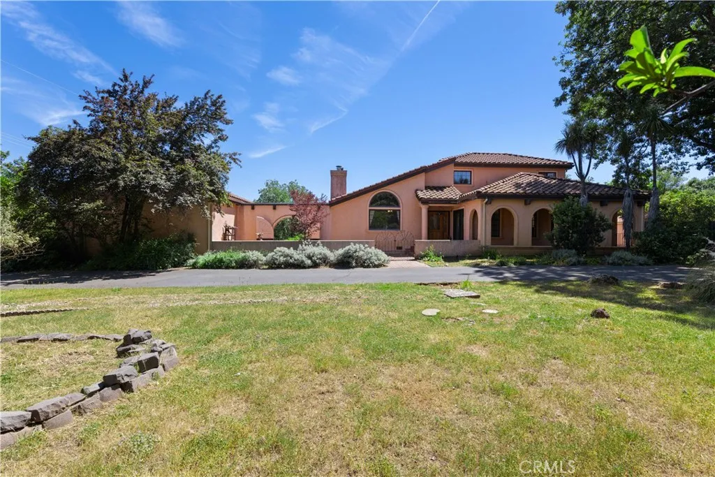 Welcome to this beautifully designed blend of Mediterranean meets Southwest-inspired home. With warm stucco exteriors, graceful arches, clay tile roof, this residence offers exceptional curb appeal. A custom front entry door with decorative glass panels sets the tone for the craftsmanship inside. Step through the inviting front porch into a spacious, thoughtfully laid-out interior. The main level features 2 bedrooms and 2 bathrooms, including a large primary suite with walk-in closet and luxurious en suite bath. A possible third bedroom and private balcony upstairs offers flexible space ideal for guests or a home office. The home flows effortlessly from room to room, with vaulted cathedral ceilings in both the living and family rooms, creating a grand, open feel. These rooms are carpeted for comfort, while the kitchen and dining areas feature easy-care vinyl flooring. The kitchen is a standout with its propane cooktop stove, wall oven, dishwasher, and a distinctive aesthetic thanks to white ceramic tile counters and backsplash adorned with a peach and turquoise Native American motif. Additional highlights include: A spacious 3-car garage with one bay functioning as a workshop. A breezeway and private courtyard in front. Distinctive architectural touches like arched windows and custom iron gates. Mature landscaping and a circular driveway. In back is hidden area to store boats, RVs and more. Located in one of Lakeports' desirable neighborhoods and just a short 4 minute drive to a grocery store and shopping. Has new AC system, new garage doors, major roof repairs, new deck an