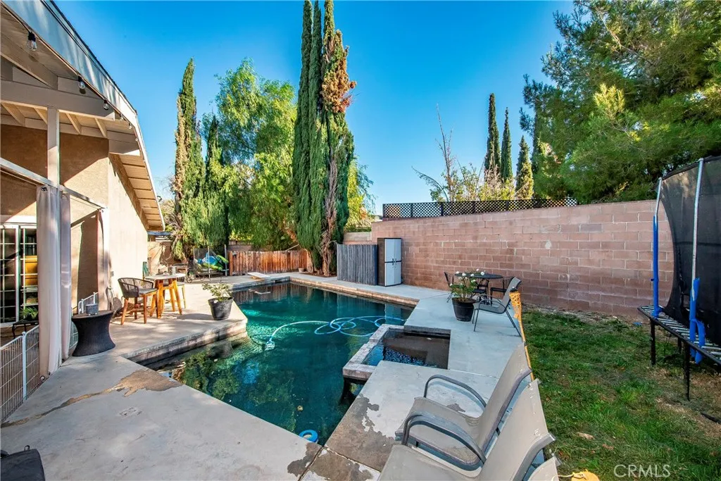 Beautifully remodeled pool/spa home waiting for your family! Welcome to this lovely home located in a wonderful neighborhood. The family room has a cozy fireplace with custom shelving, crown molding and French Doors out to the patio. The kitchen has newer granite countertops, a spacious island and modern updates for cooking and entertaining. All bedrooms are very spacious including the master. The master provides 2 closets and French Doors leading out to the pool. The entire house has newer flooring and the living area and kitchen has newer paint. The pool and spa are perfect for outdoor entertaining including a covered patio and wrap around bar. There is a new pool heater and new Pebble Tek finish in the pool. The pool upgrades alone are more than $17K! There is a solar purchase that is easily transferrable. $127 per month. This is NOT a lease. This is a must see. Welcome Home!