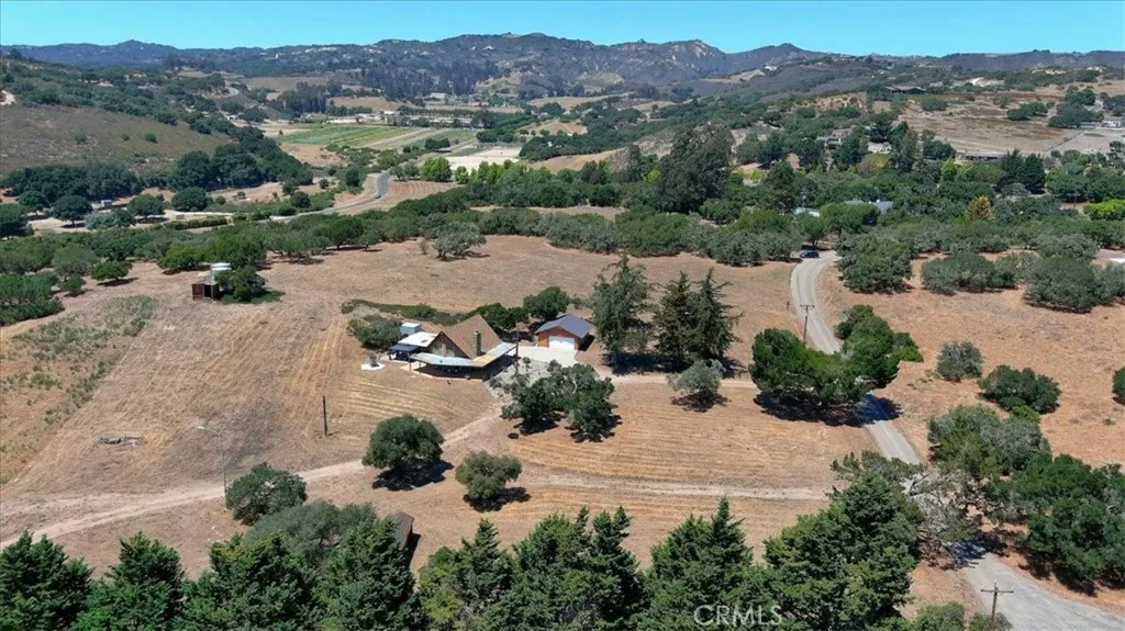 Price reduced 54,900 !!Welcome to a stunning estate nestled at the end of a private cul-de-sac, set on 20 tranquil acres in the picturesque Santa Rita Hills. This remarkable property harmoniously blends modern design with the natural beauty of its surroundings, just minutes away from the charming towns and the Santa Ynez Valley. The striking Modern A-frame home boasts a large open porch, soaring ceilings, and expansive windows that invite an abundance of natural light while framing breathtaking panoramic views. The open-concept layout seamlessly connects indoor comfort with the beautiful landscape, creating a true sanctuary for relaxation and rejuvenation. Thoughtfully updated, the home features sleek appliances, hard surface flooring, a new stainless steel sink, and air conditioning for your comfort. Additional bonus rooms with a sink area offer excellent potential for a junior ADU, making it ideal for guests, rental income, or multigenerational living. Convenience is enhanced with a detached two-car garage, while the nearly level usable land presents endless possibilities for your dreams. Whether you're envisioning an equestrian paradise, a boutique vineyard, or a private retreat, this property serves as a canvas for your aspirations. Plans for a second building site have already been proposed, including a 6,000 sq ft residence with a separate electric meter. This secluded estate not only offers privacy but also provides easy access to wineries, golf courses,beaches!! Home to be sold as is with new price reduction !!