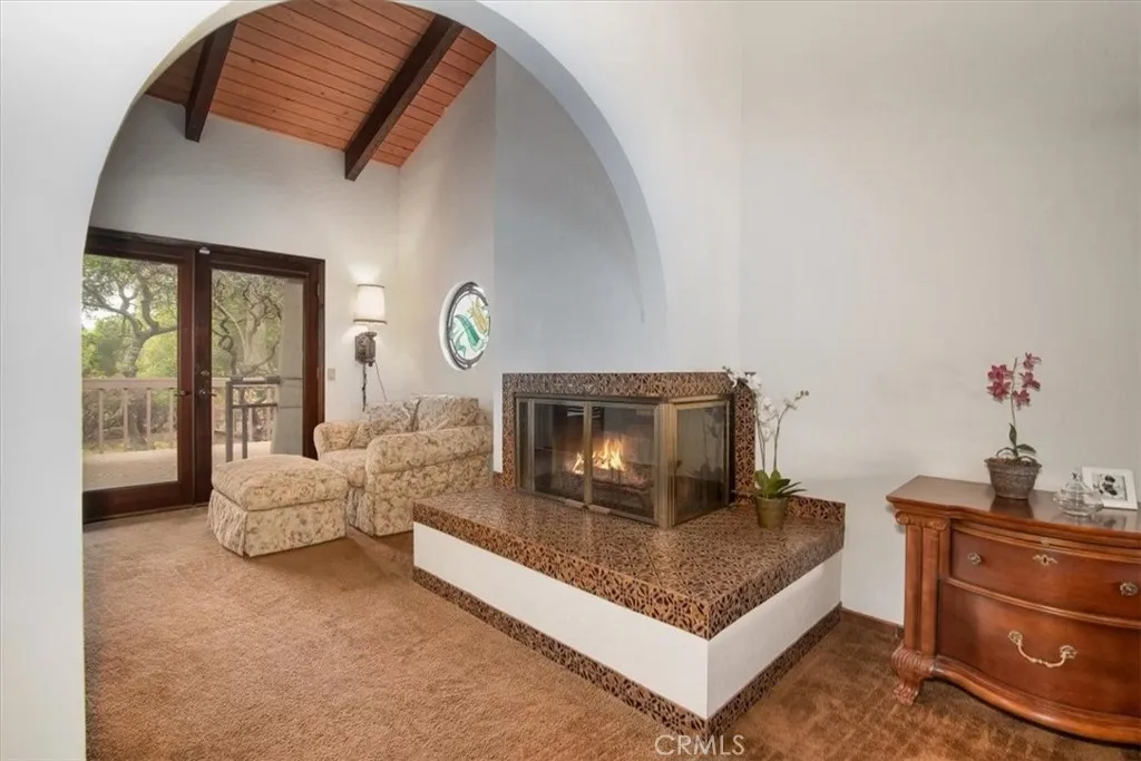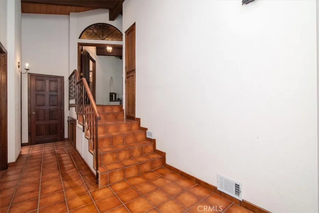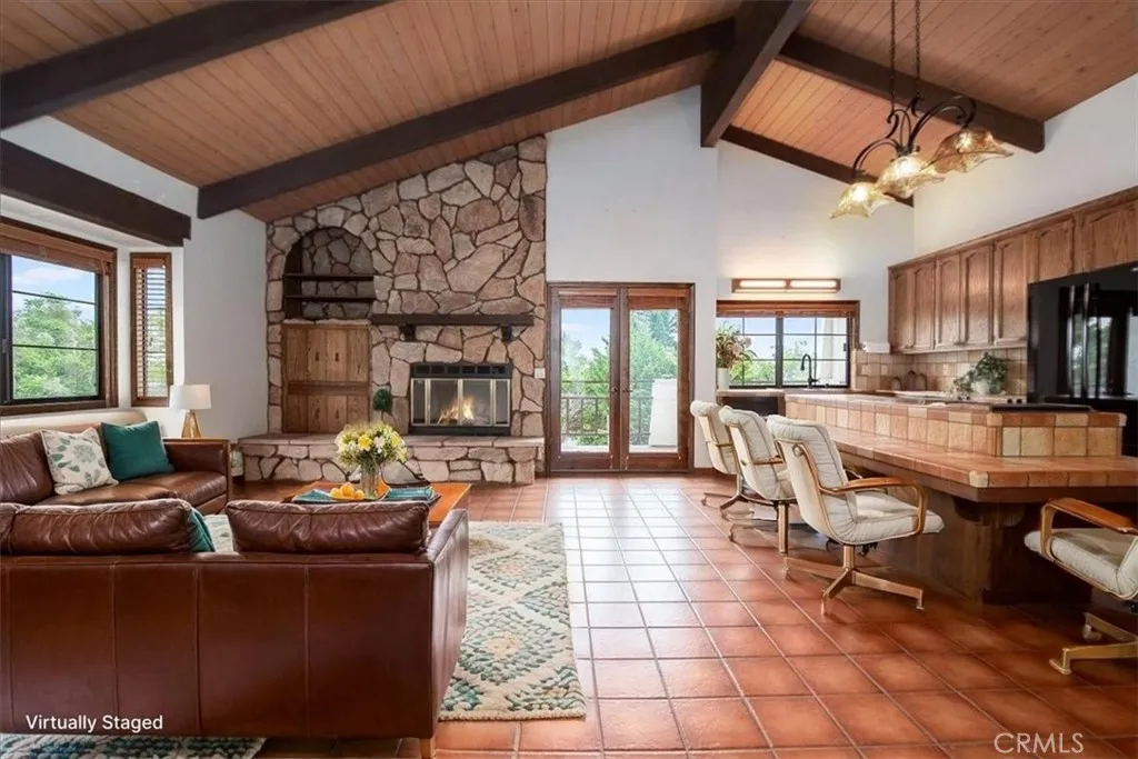 Nestled within a prestigious country club, 445 Firestone Way exudes the charm of a Mediterranean/Spanish home. Situated at the end of a tranquil cul-de-sac, this residence offers both privacy and elegance. The inviting entrance via the circular driveway, leading to a front patio with beautifully laid tiles and a serene fountain. Enter to discover cathedral ceilings adorned with exquisite wood beams. A graceful staircase guides you to the remarkable primary suite. This expansive retreat features a large bedroom with a cozy lounge area and fireplace. One bedroom is currently set up to use as an office. Enjoy stunning backyard views from one of the private balconiesideal for quiet reflection or morning coffee. The suite includes two full bathrooms: one with a tranquil soaking tub and expansive walk-in closet, the other with a sleek, glass-enclosed shower. The spacious living room boasts high wooden beamed ceilings and picturesque windows and an inviting abundant natural light. A formal dining area overlooks the living room, perfect for entertaining guests. The chef's dream kitchen features wood beam ceilings and a generous island adjacent, the family room offers a cozy haven with a rock fireplace and balcony. A fully-equipped bar stands ready for crafting cocktails or enjoying an evening drink. 445 Firestone Way is more than a home; it is a lifestyle, offering a unique living experience with its elegant design, luxurious amenities, and serene location.
