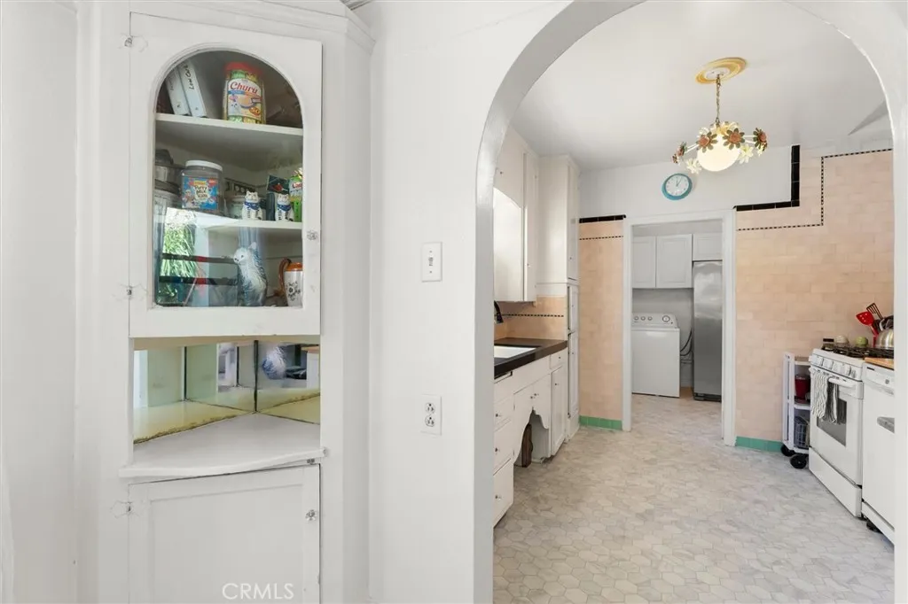 Huge 2 bed 1 bath Spanish home - over 1300 square feet! - with Art Deco features on large lot in welcoming neighborhood of North Long Beach. Large living room with tray ceilings and original Art Deco sconces frame the large front picture window and handsome wood framed windows in this expansive room. Gorgeous hardwood floors with dark wood inlays and Spanish tiles on step up to dining area bring a rich feel to this historic home. Huge bathroom features built-in vanity, full tub and separate tile shower all adorned in original tiles and vintage sink, tub, and toilet. Light and bright separate dining room off kitchen can easily function as a 3rd bedroom or nursery, plus you still have another room to function as an office or another bedroom! Nice sized bedrooms both feature spacious closets and artistic raised plaster "wedding cake" decorations on the walls and ceilings. This home is a true vintage gem! The back yard is so big that it has a large patio area perfect for entertaining and still has a large grassy area for pets, kids, and gardening. Off street parking for 2-3 cars in driveway plus a 2 car garage! This house is lovely just the way it is and also has tons of potential to add on with 2nd bathroom or explore converting garage to ADU!