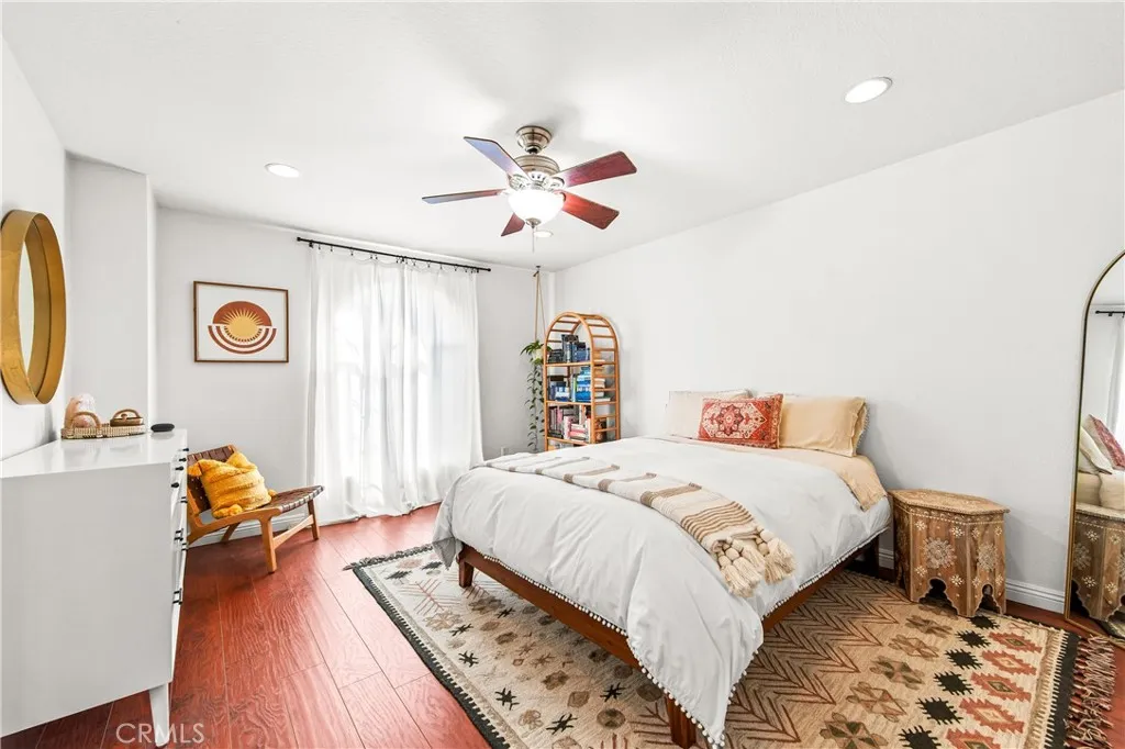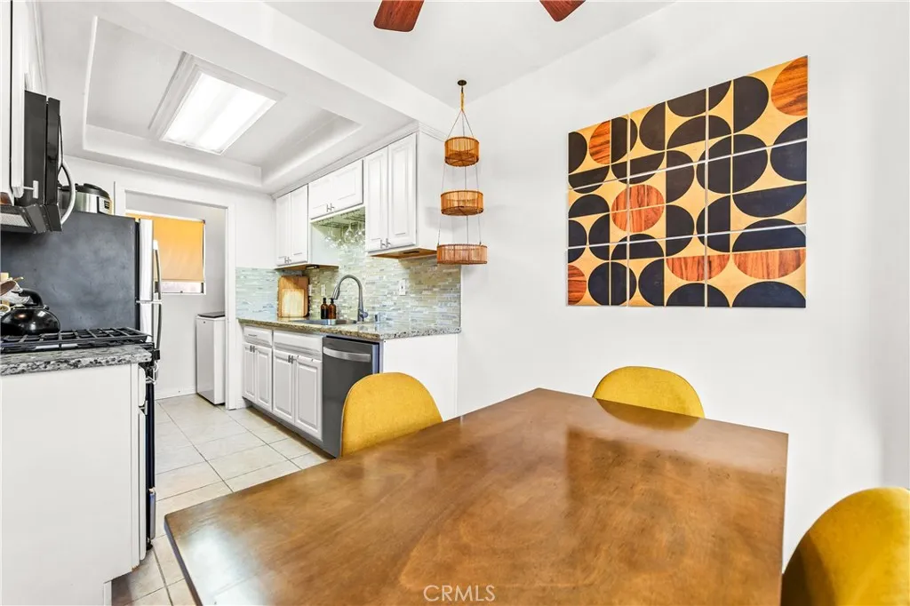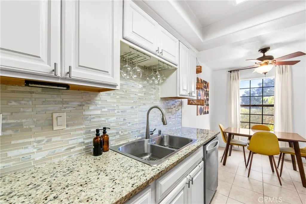 Welcome to this Mediterranean-style condominium located on a quiet cul-de-sac in the heart of Long Beach, less than two miles from the ocean. Unit #203 sits on the second floor of a friendly 24-unit community surrounded by manicured landscaping. Inside, step through the travertine foyer into a bright, open floor plan with vaulted ceilings. This 3-bedroom, 2-bath corner unit features custom laminate flooring, a sunny dining area, and a spacious living room that leads to a newly renovated balcony framed by palm tree views. The remodeled kitchen offers granite countertops, white cabinetry, and brand-new black and stainless-steel appliances are included. A tucked-away laundry room with washer and dryer and a nearby linen closet add convenience. The primary suite includes a walk-in closet and ensuite bath, while the two additional bedrooms feature mirrored wardrobes. The layout feels open and well-proportioned across roughly 1,000 square feet. Additional highlights include two tandem parking spaces in a secure, gated garage with 24-hour surveillance. With Long Beachs continued coastal growth, this move-in-ready home is an excellent opportunity in todays low-inventory market.