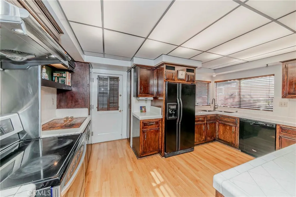 Cherished Single-Level Home with Timeless Character Lovingly cared for by the same family for over 40 years, this inviting 5-bedroom, 2-bathroom residence offers comfort, space, and classic charm in a highly desirable neighborhood. Step inside to a welcoming dining area with vaulted wood-beam ceilings and a large picture window overlooking the front yard. The spacious living room features expansive windows framing views of the tranquil backyard and a two-way brick fireplace shared with the dining areaperfect for cozy gatherings. The bright kitchen includes an electric range, wine cooler, two windows over the sink, and a convenient breakfast counter. The hallway bath features a tub with a glass enclosure, while the enormous primary suite offers a walk-in closet and an ensuite bathroom with dual sinks and a soaking tub. Stained-glass accents add a touch of artistry throughout the home, and multiple bedrooms provide flexibility for family, guests, or a home office. Additional highlights include a newer roof and solar panels, offering energy efficiency and long-term savings. Enjoy the peaceful backyard with mature landscaping, and the beautifully maintained front yard with wonderful curb appeal. An attached garage with automatic door and a friendly neighborhoodwhere neighbors walking their dogs stop to say hellomake this home even more special. Conveniently located near major freeways, shopping, and a nearby university, this is a rare opportunity to own a spacious single-level home with lasting warmth and character.