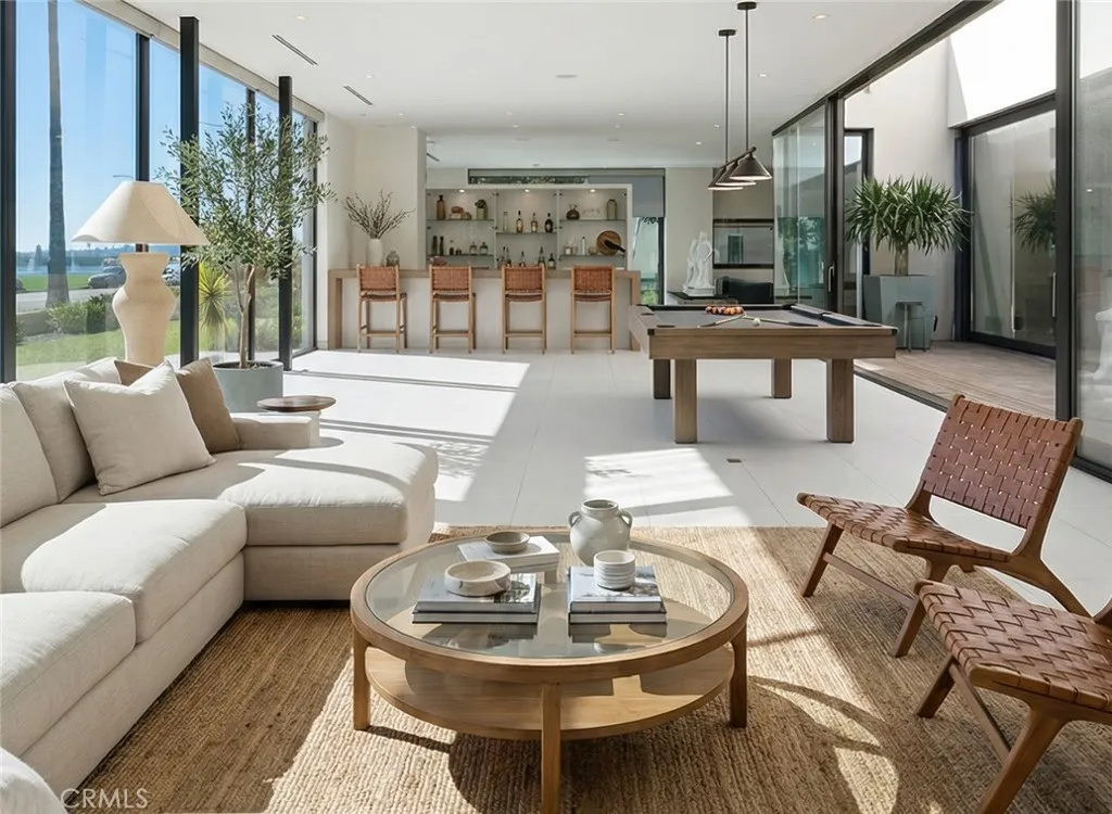 PANORAMIC OCEAN VIEWS!!! Views from every room! Just steps from the water!! This home features the largest rooftop terrace of any residence on Ocean Blvd, offering breathtaking views of the water and the iconic Queen Mary. Priced well below market! This architecturally striking modern estate blends sleek urban aesthetics with breathtaking ocean and Catalina Island views. Crafted with premium European finishes, the home showcases Gaggenau appliances, Leicht cabinetry, and Elica lighting throughout speaking to its sophisticated design pedigree. The main level offers expansive indoor-outdoor living, with a dining area overlooking the swimming pool and sun terrace, a stylish living room with wet bar, a family room, office, and a guest suite. A floating staircaseor elevatorleads to the luxurious primary suite, featuring dual steam showers, a soaking tub beneath a skylight, private terrace, sitting area, fireplace, and two additional ensuite bedrooms. The third floor is devoted to wellness and entertainment, boasting a yoga/exercise studio and a spacious rooftop deck with sweeping coastal and city light views. The 3,500 sq ft lower level is an entertainers dream, complete with a wet bar, catering kitchen, 500-bottle wine cellar, caretakers suite, and generous storage space. Call for a tour. Photos have been Ai enhanced and digitally staged to show the potential this coastal home offers.