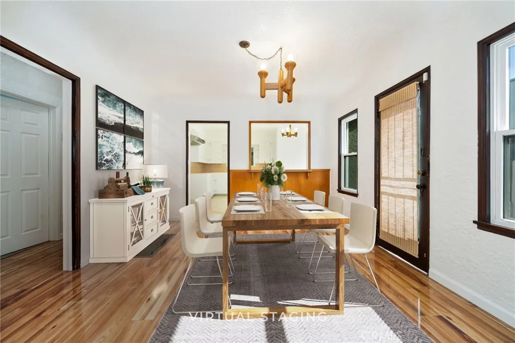 Step into the charm of this enchanting 3-bedroom, 1-bath Spanish bungalow nestled on a quiet one-way street in North Long Beachwhere reduced traffic means added peace and privacy. Built in 1931, this home beautifully preserves its original character, featuring graceful arched entryways, built-in cabinetry, and a spacious eat-in kitchen that nods to its historic roots. The thoughtfully designed layout welcomes you with an expansive living room that flows seamlessly into a formal dining area, then into the kitchencomplete with a convenient pass-through window, perfect for entertaining. Along the left side of the home, youll find generously sized bedrooms adorned with classic picture rail molding, offering a sense of separation and tranquility from the main living spacesideal for both hosting and unwinding. Modern upgrades blend effortlessly with vintage charm, including gorgeous wood-looking laminate flooring throughout, a new AC as well as heating system, Sky light over the shower and solarproviding comfort and efficiency for years to come. Outside, the property continues to impress with ample parking behind a gated garage, accommodating up to three vehicles, plus an extended driveway with room for four more. The backyard is a private retreat featuring multiple seating areas for gatherings, a Tuff Shed for extra storage, and a bonus hidden room behind the garageperfect for tools, bikes, or a creative workspace. This timeless Spanish-style home offers character, functionality, and modern convenience all in one. A rare find you wont want to missschedule your showing today!