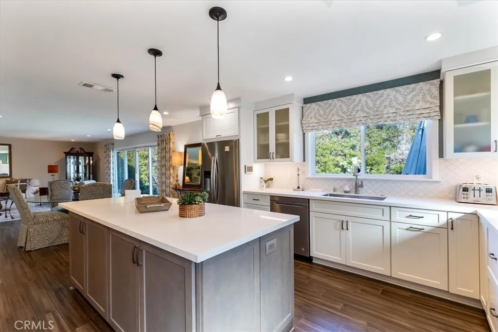 Welcome to 3490 Lama Avenue, Long Beach, a beautifully updated single-story home blending timeless charm with modern sophistication. Fully remodeled in 2020, this 2-bedroom, 2-bath residence has been meticulously maintained and thoughtfully upgraded throughout. The spacious living room features elegant wood-style flooring, recessed lighting, and a stunning stone fireplace framed by custom built-ins. The open-concept kitchen is the heart of the home, showcasing quartz countertops, a large center island, soft-close cabinetry, stainless steel appliances, and designer pendant lighting,perfect for entertaining or enjoying quiet mornings at home. Both bathrooms have been stylishly remodeled with contemporary tilework and sleek finishes, while the primary suite includes a custom cedar-lined walk-in closet offering ample storage and luxury appeal. The second bedroom is bright and versatile, perfect as a guest room, home office, or cozy media space. Sliding glass doors open to a private backyard retreat with lush landscaping and a generous patio, ideal for relaxing or hosting guests. Additional features include dual-pane windows, an electronic thermostat, Ring doorbell, central HVAC, and a two-car attached garage. Situated on a quiet, tree-lined street in one of East Long Beachs most desirable neighborhoods, this move-in-ready home delivers comfort, quality, and convenience in one exceptional package.