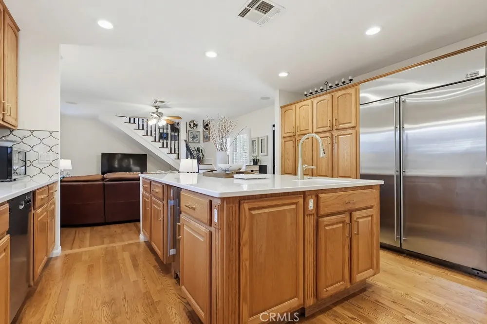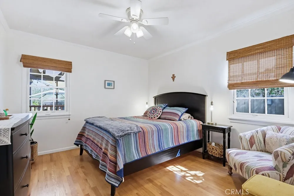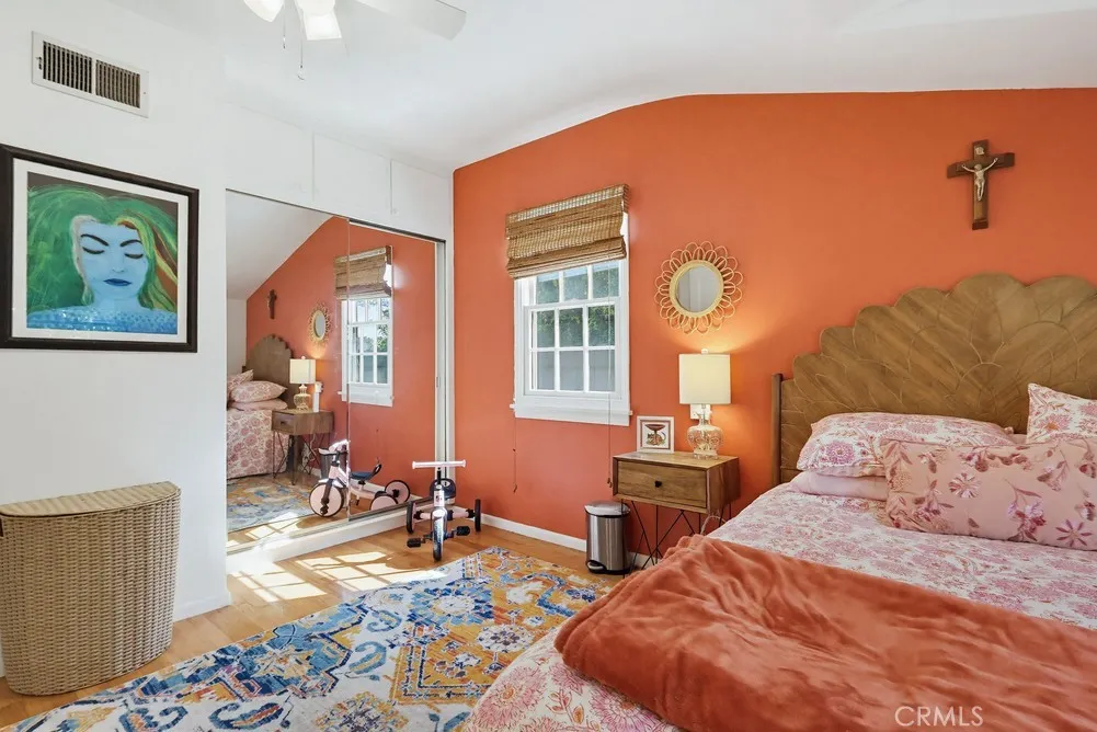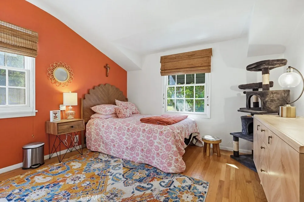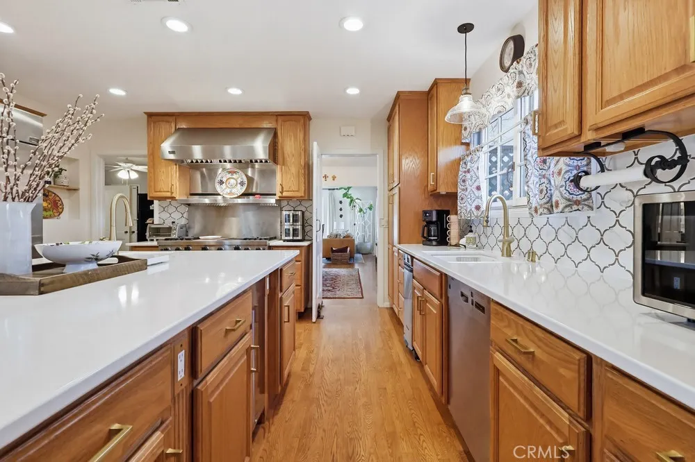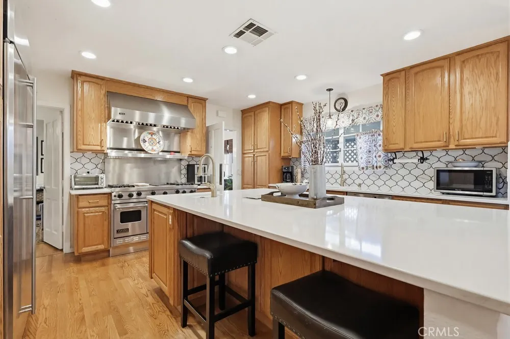 This meticulously maintained home in the highly sought after historic neighborhood of California Heights was originally constructed in 1949 and extensively added onto and remodeled in 2004. The entire downstairs has gleaming hardwood floors. The living room is graced by a large French paned picture window and wood burning fireplace. The dining area is spacious and can accommodate large family gatherings. The kitchen is worthy of the finest gourmet chef with high-end stainless steel appliances, quartz counters, massive island and loads of storage. The family room has a staircase to access the large master suite and door to access rear yard. There are 3 downstairs bedrooms (one equipped with a French slider to access the rear covered patio/catio) and a beautiful bathroom with dual sink and walk-in shower. The entire upstairs is dedicated to a massive master suite with vaulted ceiling, king size walk-in closet with a custom organizing system and a spacious bath with dual sinks, jet-spa tub and a walk-in shower larger than any presidential hotel suite. Lastly, there is a very generous laundry room with ample linen storage and pull down stairs leading to a large storage attic. The rear yard has a covered patio, entertaining deck, wide expanse of lawn surrounded by a perimeter planting beds and a 2 car garage.