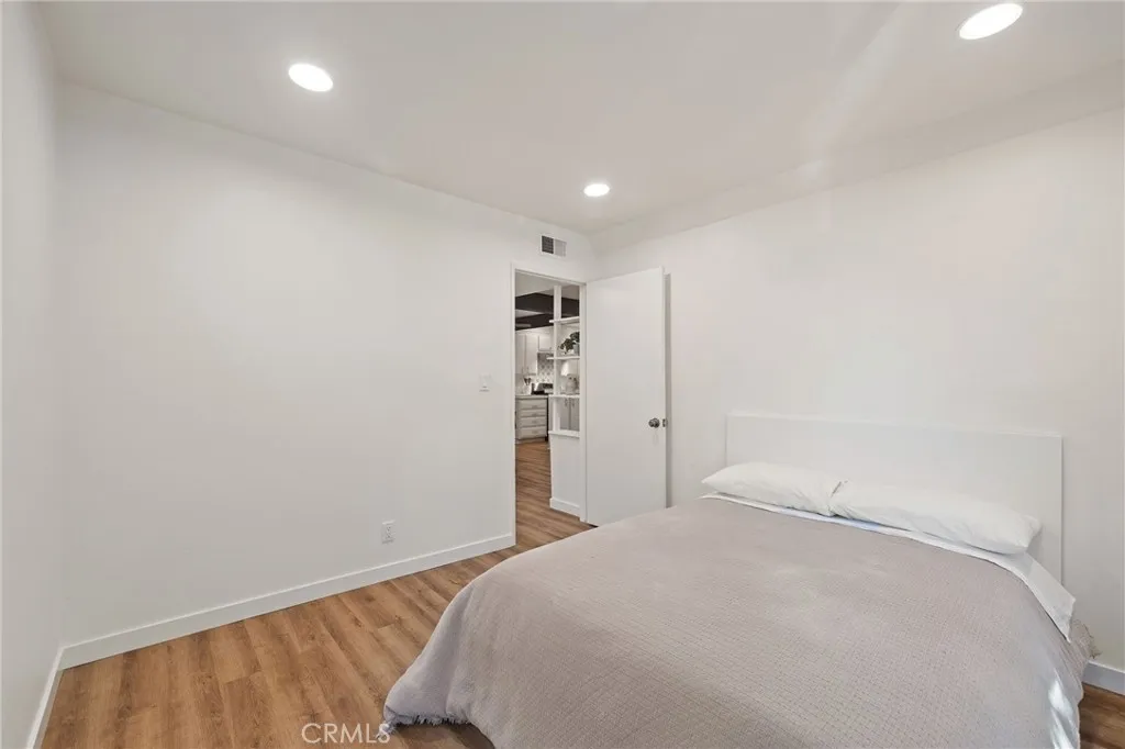 Welcome to the well-maintained, gated community of Country Club Villas, nestled in the highly sought-after Los Cerritos/Bixby Knolls neighborhood. This completely remodeled top-floor residence offers the perfect blend of style, comfort, and convenience. Step inside to discover a spacious living room with beautiful beamed and vaulted ceilings, complemented by an open-concept layout that welcomes abundant natural light through large windows framing serene views of mature courtyard trees. The modern kitchen features quartz countertops, stainless steel appliances, a breakfast bar, and ample storage. The dining area flows seamlessly into the living space, creating an airy and inviting atmosphere. Both bedrooms are generously sized, including a primary suite with a walk-in closet and updated en-suite bath. Additional highlights include in-unit laundry hookups, a covered balcony, and a detached two-car garage conveniently located just steps from the home. Fully remodeled in 2022, this residence boasts a new HVAC system and ducting, dual-pane windows, recessed lighting, waterproof laminate flooring, and tastefully renovated bathrooms and kitchen with contemporary finishes throughout. Residents enjoy access to resort-style amenities, including a pool and spa, clubhouse, fitness room with sauna and showers, pickleball court, and secure gated entryall included in the low HOA fee of just $465 per month, which also covers water and trash. Centrally located just minutes from shopping, dining, and major freeways, with highly rated schools (Los Cerritos, Hughes, and Poly) and Los Cerritos