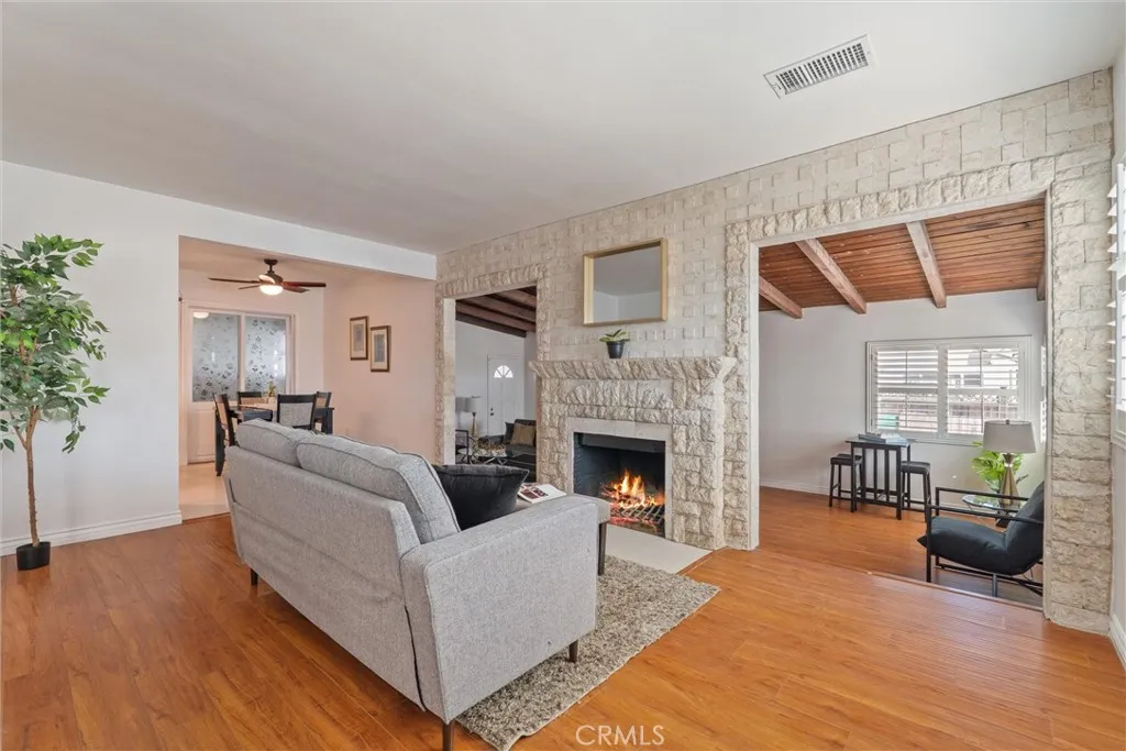 Welcome to this charming East Long Beach home offering a bright, open layout and an effortless blend of comfort and style. The living room features rich wood-like flooring, a cozy stone fireplace, and large windows that fill the space with natural light. Just off the living area, the expansive family room with exposed wood-beam ceilings creates the perfect setting for gatherings, game nights, or a relaxing evening at home. The remodeled kitchen has granite countertops, abundant custom cabinetry, stainless steel appliances, and a functional U-shaped layout that is open to the dining room. The home's three generously sized bedrooms, two bathrooms, and a convenient indoor laundry room add everyday practicality. Out back is the perfect year-round retreat with outdoor dining under the large covered patio, unwinding in the hot tub, enjoying the firepit, or just relaxing on the deck and pergola. The detached 2-car garage provides ample storage, workshop potential, or parking flexibility. We cannot forget to mention a driveway large enough to park 4 cars for a total of potentially 6 parking spots. Additional highlights include fresh paint throughout, abundant natural light, and excellent flow between indoor and outdoor spaces. Centrally located near award-winning schools, including the sought-after Spanish dual immersion Bixby Elementary School, as well as convenient shopping, dining, and entertainment options.