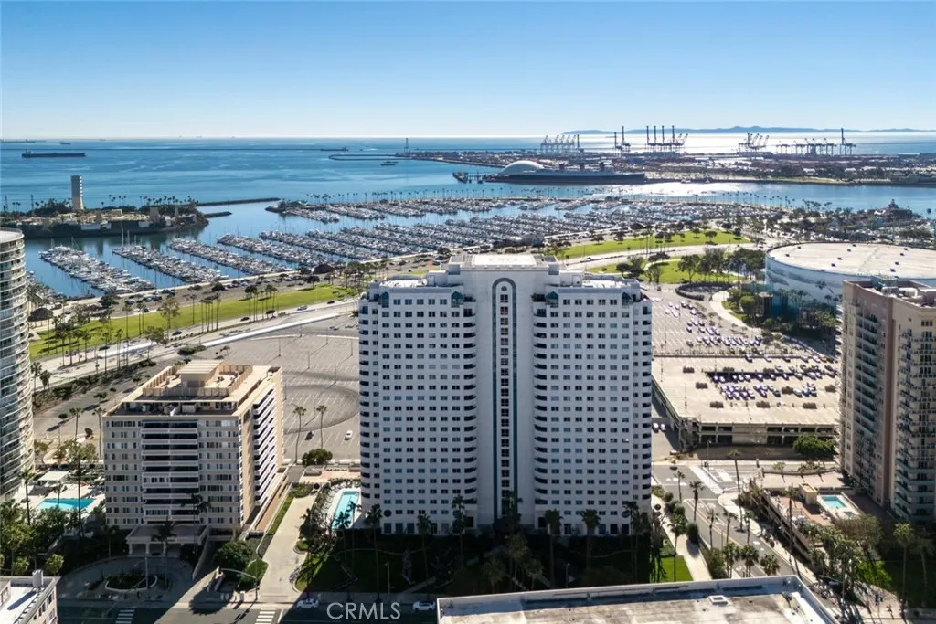 It's not too often that a downtown condo offers the satiating satisfaction of a coastal view and the exciting vibrance of a city view, but here at 525 E. Seaside Way you can enjoy both. With 1,313sqft of living space, one of the largest floor plans offered, this Harbor Place 2 bed, 2 bath end unit condo is uniquely sought after, as these desirable units offer not one, but two balconies with distinctly different views, and are not often available. The convenience of in-unit full size side-by-side laundry, a host of closet space, and a luxury level amenity package that includes, 24hr security, mail room, heated salt water lap pool, jacuzzi, weight-room, men's and women's saunas, grilling station, meeting rooms, 80 (YES, 80!) plus visitor parking spaces, and more. This move-in ready unit has beautifully upgraded flooring throughout, upgraded kitchen, and soaking tub with shower in the guest bathroom. Enjoy the jacuzzi tub with separate walk-in shower and dual vanity in the master suite, in a sophisticated unit complemented by a bright, spacious layout, and two assigned parking spaces. Experience an elevated luxury high-rise lifestyle, in downtown Long Beach. Steps from entertainment, shopping, restaurants, beach paths, and so much more. Not only will you be privy to enviable views that are unmatched by grandstand spectators and tv viewers alike during the annual Long Beach Grand Prix car races, but you'll be near the epicenter of the 2028 Summer Olympic Games in which the city of Long Beach will play host to numerous events. Take this opportunity to establish your place in dow