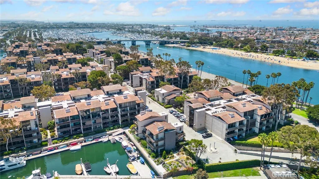 This GORGEOUS WATERFRONT, beautifully upgraded condo offers over 1,800 square feet of stylish living with serene bay views. The lower level features a private guest en-suite, convenient laundry area, and an exceptional primary suite with custom upholstered walls, custom bathroom finishes, multiple closets including a walk-in, and peaceful water views that create a true sense of escape. Upstairs, the bright living room opens to stunning views and flows seamlessly into the elevated dining area with a custom built-in banquette, perfect for entertaining. The upgraded kitchen features high-end appliances and bar seating, while a renovated bathroom adds convenience for guests. A third bedroom near the upper entry provides additional comfort and flexibility. Marina Pacifica offers a true resort-style lifestyle, featuring six pools and spas, three tranquil lagoons, a clubhouse, and a fitness center, all set within beautifully landscaped waterfront grounds. A private footbridge provides direct access to shopping, restaurants, a movie theater, and Duffy boat rentals. Ideally located near Gelsons, 2nd & PCH, the local farmers market, the beach, and Naples Island. This residence looks out to Marine Stadium, home to the rowing and canoe sprint competitions for the 2028 Olympic Games, making it perfectly positioned to enjoy the excitement of this world class event. With two parking spaces, two private balconies, thoughtful custom details throughout, and breathtaking sunsets, this home offers the perfect blend of comfort, style, and coastal living.