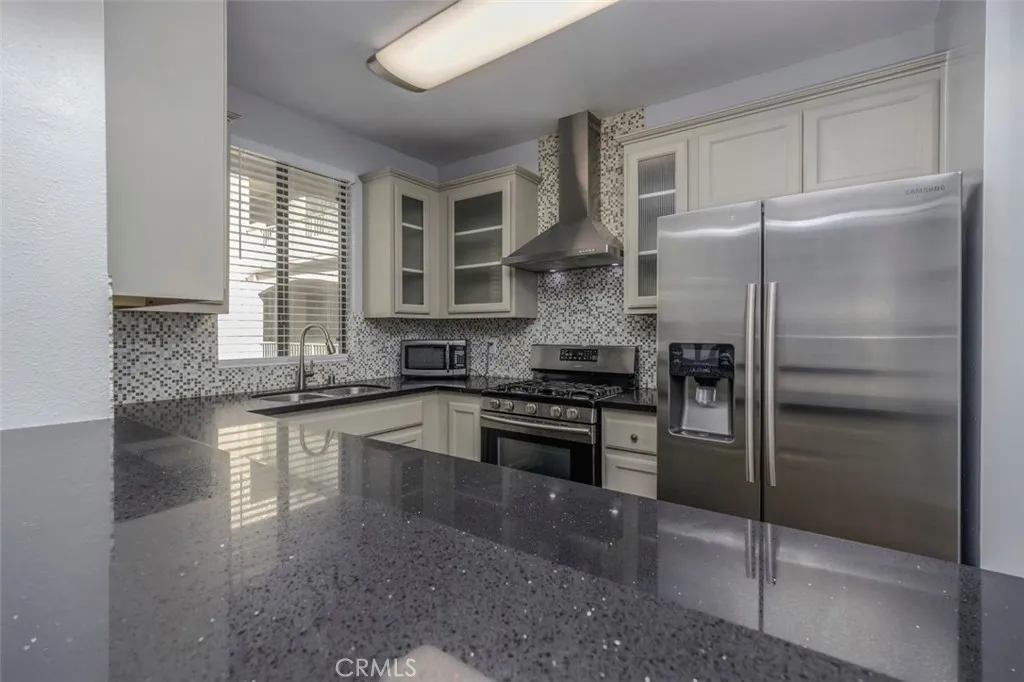 Enjoy the modern look and designer touches in an upgraded unit at the desirable Emerald Villas. The kitchen, bathrooms, living room and bedrooms have been redone bringing a cohesive cosmopolitan look. Kitchen has newer cabinets with black quartz countertops, mosaic backslash, stainless steel appliances and cooktop vent. Livingroom has statement making fireplace and stylish shelving. Warm looking hardwood flooring and designer paint that run throughout the entire unit give it a rich look. Bathrooms have newer shower doors, title, vanity and flooring. No common walls and two parking spaces help elevate this special property and make it unique. Community has resort style pool, beautiful entry courtyard, rooftop and gym for your workouts. Great downtown location close to the nightlife, park, bike path, freeways and everything you need and want for a fantastic urban life.