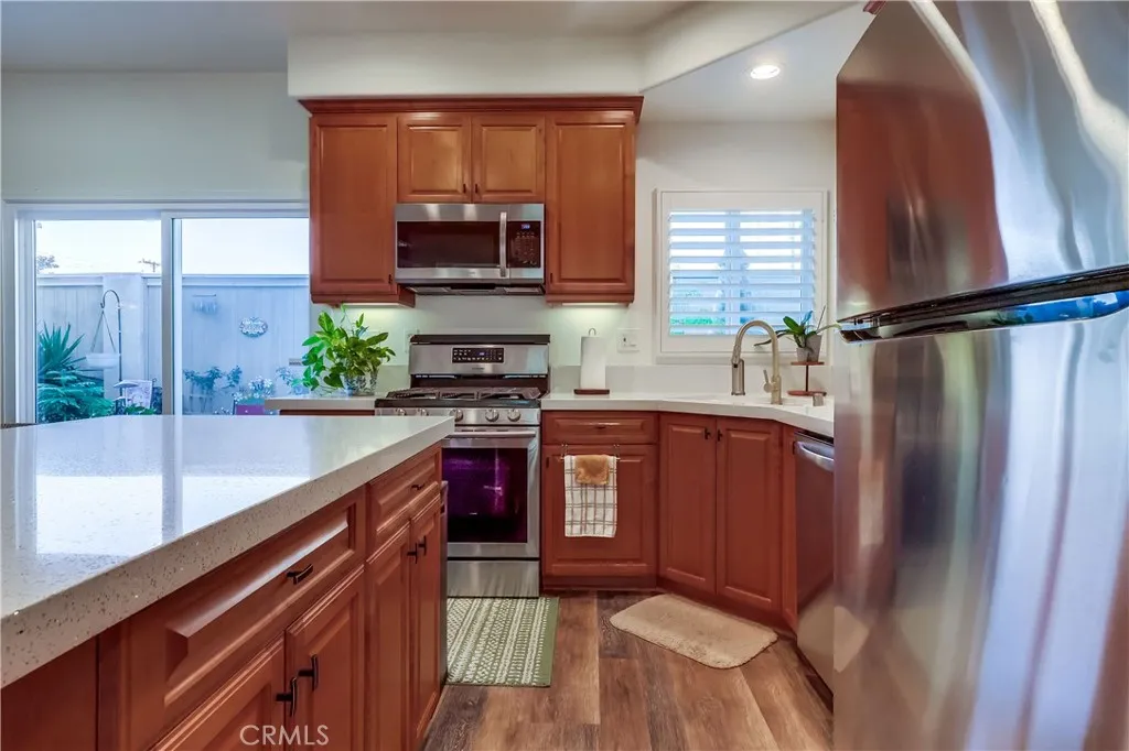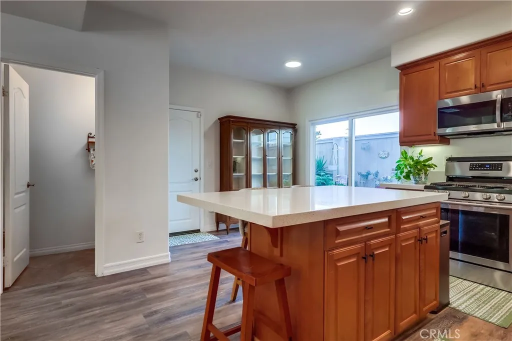 Welcome home! This lovely modern townhome feels like a single-family home, with bright rooms, on-site parking, and a short walk to Heartwell Park. Truly "Turn Key" condition, very fresh inside and out. Floor plan is wide open downstairs, pleasant entry into living room and dining room, with nice laminate flooring. Large island in the kitchen for your friends and family to gather around, great for parties or family time. Stainless steel appliances, gorgeous newer wood cabinets, and ample workspace for creating gourmet meals. All dual-pane, modern windows. Nice fixtures throughout. The enclosed private back patio is large enough for a BBQ, dining area, entertaining, and creating your own garden space. Upstairs features three bedrooms, including a large primary suite with its own spa-like bathroom: Dual-sink vanity, large tub, and separate glass-enclosed shower. Walk-in closets in two of the three bedrooms. Laundry in the upstairs hall, gas dryer. Full hall bath upstairs, and additional half bath downstairs. Extended, large 2-car garage is nicely finished, with room for two cars, plus a craft space, and lots of storage. The home is in excellent, move-in condition, and located in a very desirable area of Long Beach, with transportation corridors nearby, lots of shopping and dining options, and HUGE Heartwell Park just a few steps away: Bike path, walking, baseball, soccer, etc. all nearby, in a gorgeous tree-filled park.