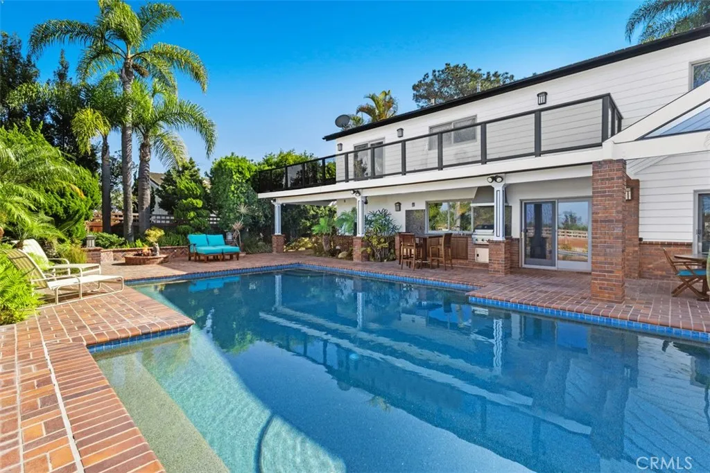 Welcome to 6421 E Bixby Hill Road! This stunning 3-bedroom, 4-bathroom property is a true Pool Home oasis, nestled on an expansive 10,173 sqft lot (est.) within the prestigious guard-gated community of Bixby Hill. A newly painted exterior welcomes you to the elegant double-door entry with a courtyard. Inside, you'll discover a bright family room featuring a cozy fireplace. The chef's kitchen is equipped with granite countertops and ample cabinetry, flowing seamlessly into the dining room with its convenient wet bar. The first floor also includes a laundry room, a full bathroom with shower, and a living room with a connected half bath.Upstairs, the primary suite is a luxurious retreat, boasting a second fireplace, a relaxing jetted spa, and a private balcony. The ensuite primary bathroom offers dual sinks, abundant counter space, and a substantial walk-in closet room. Two additional secondary bedrooms complete the upper level, including one with a balcony overlooking the backyard. Step outside to your backyard oasis, perfect for entertaining. It features a sparkling swimming pool, a built-in BBQ with a range hood, an inviting outdoor firepit, and generous patio space. Location is key! This prime location offers close proximity to Cal State Long Beach (CSULB), award-winning schools, beaches, shopping, bike paths, golf courses, and major freeways. Don't miss this opportunity in Long Beach's desirable Bixby Hill community!