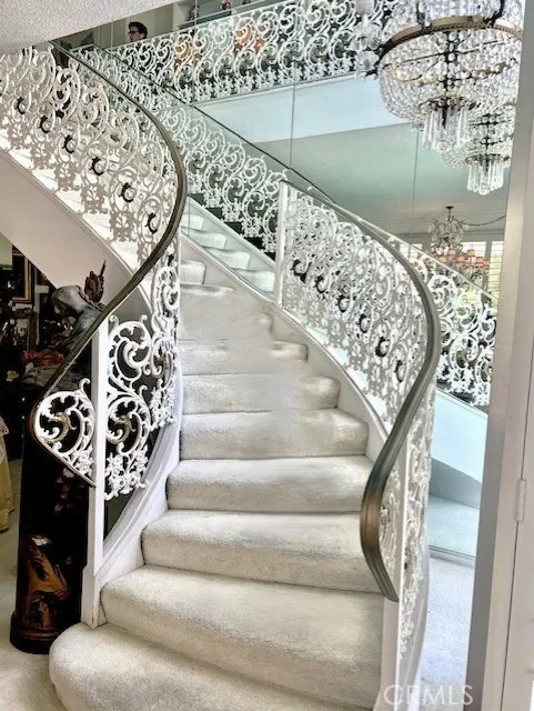 WELCOME HOME to this spectacular one of kind custom built property located overlooking Recreation Park golf course. This very unique home is a well designed combination of Mid Century Modern and traditional elegance and very upgraded finishes including terrazo flooring, marble countertops, numerous finished white columns, two marble fireplaces, gold plated door knobs, stainless appliances in kitchen, custom wall finishes pluse solar panels. Over 5000 s.f. of spacious living and entertainment areas including an expansive living room with marble fireplace, large great room with marble fireplace & bar area, formal dining room, separate office, well appointed kitchen with center island and numerous cabinets plus built in desk and a first level bedroom suite. All built around access and views to the large patio area with pool and entertainment room with wine storage, built brick barbeque and dining area. Up the grand curved staircase are 3 bedrooms including a very spacious primary suite with attached large balconey that looks out to the golf course, a primary suite bathroom finished in terrazo and marble with large sunken tub and two separate vanities. Lots of closets including a large walk in cedar lined closet. Down the hall is another bedroom suite with golf course views. closets and bathroom with an oversized round terrazo shower. The middle bedroom has a wall of windows with golf course views and balcony. A third bathroom boasts walk-in closets and a round terrazo sunken bathtub plus a large vanity sink area all finished in white marble. There is a 5th bedroom/bathroom stu